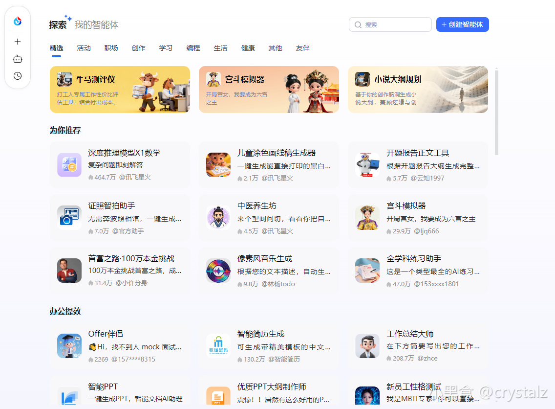 特别是「智能体广场」,包含了 120000+ 各种场景应用。
