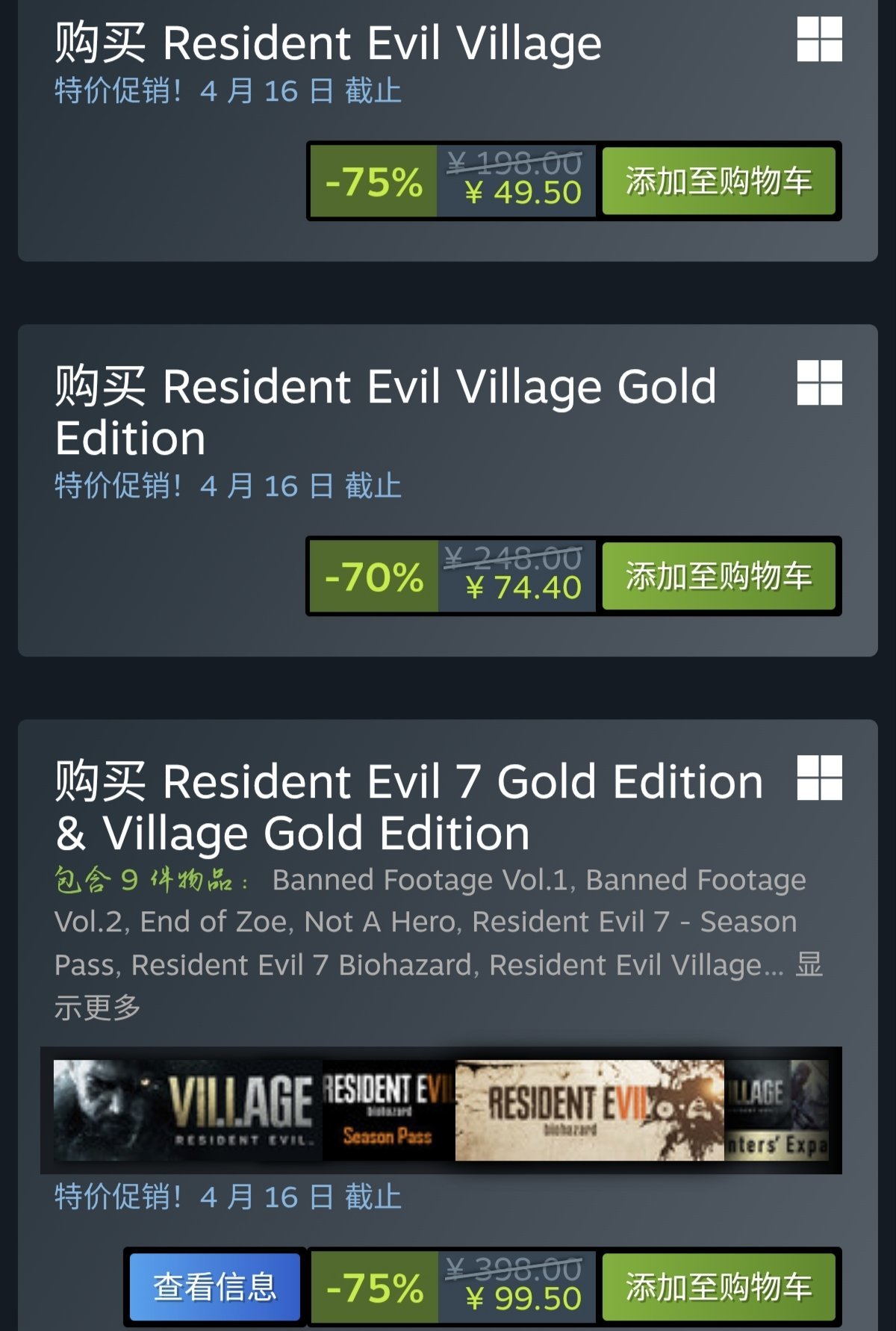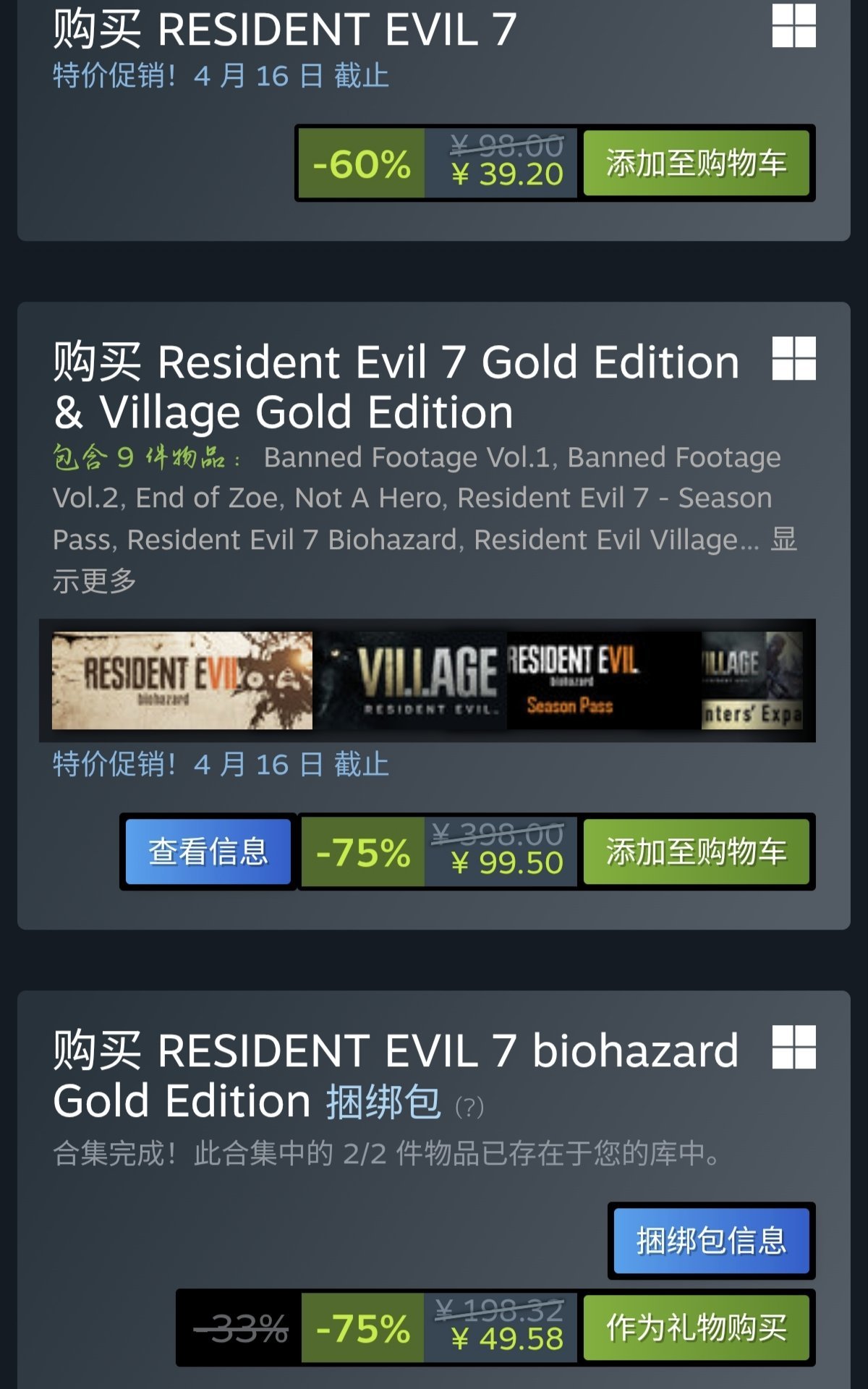 第三个,7+8黄金捆绑包,生化危机7游戏本体+生化危机7全部剧情dlc,生化危机8游戏本体+生化危机8全部剧情dlc