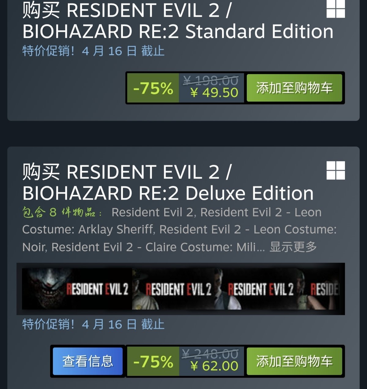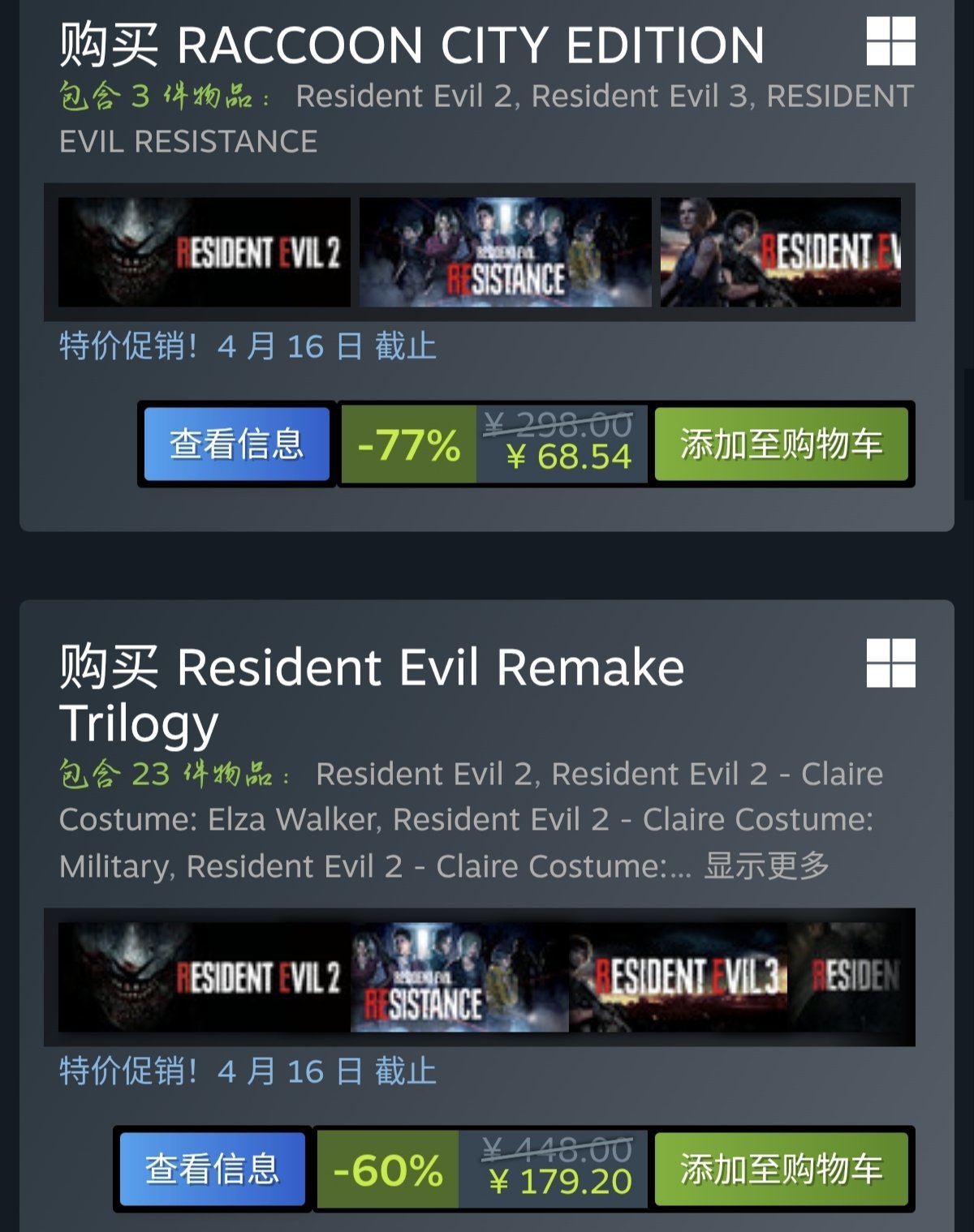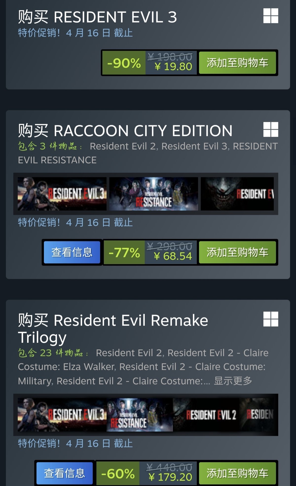 综上所述,重制版生化危机三部曲,最实惠购买建议,是直接购买2.3.4豪华大包,有全部内容和皮肤,一步到位。