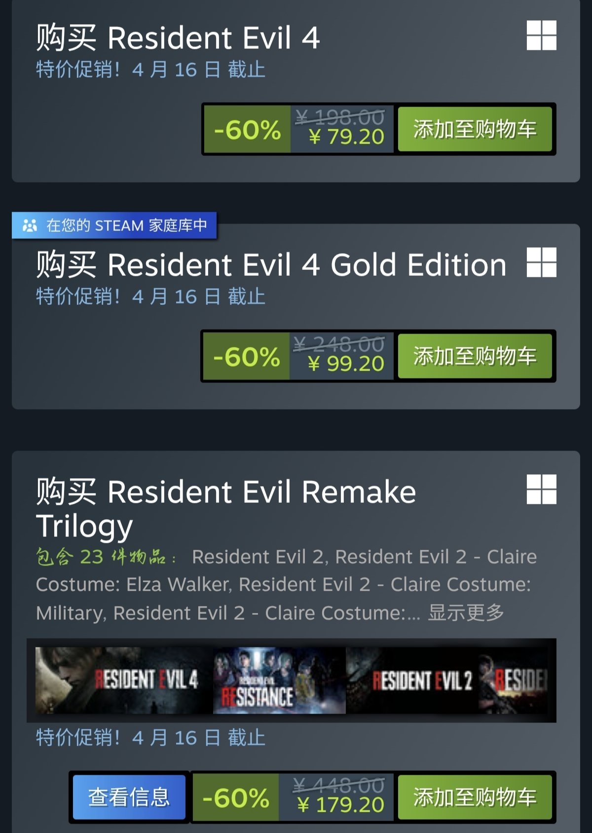 前面七部比较老的生化游戏,小黑盒会时不时出捆绑包,注意一下,基本可以优惠价入手。