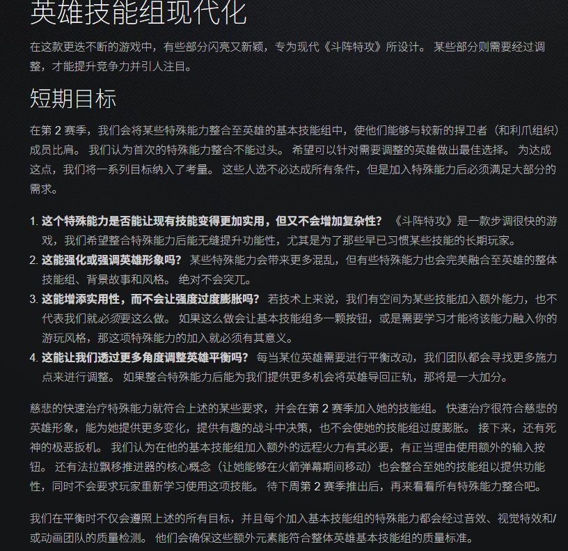 Alec 透露,开发团队将在第 2 赛季启动特殊能力整合计划,把符合适配性、英雄调性、平衡性等标准的特殊能力纳入英雄基础技能组,首批调整将包括慈悲、死神、法老之鹰三名英雄,相关改动均完成音视效与动画品质打磨,将随赛季上线同步实装。