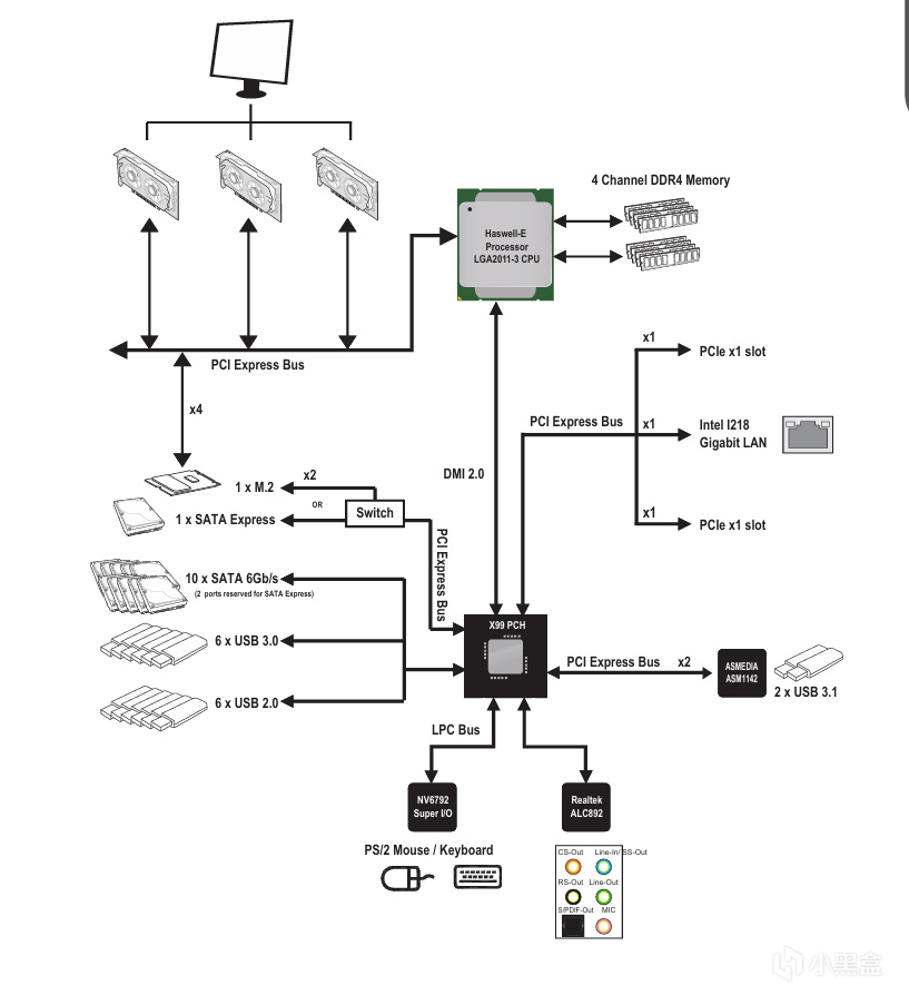 以我的电脑主机的微星X99突袭者主板为例,其PS/2接口是走PCH的。实际上大部分主板的PS/2接口几乎都是走芯片组的,不过其工作方式和USB截然不同,也就牵扯出PS/2接口的另一个特点:
