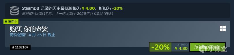 你的老婆开启-20%史低折扣,¥4.8可入手!