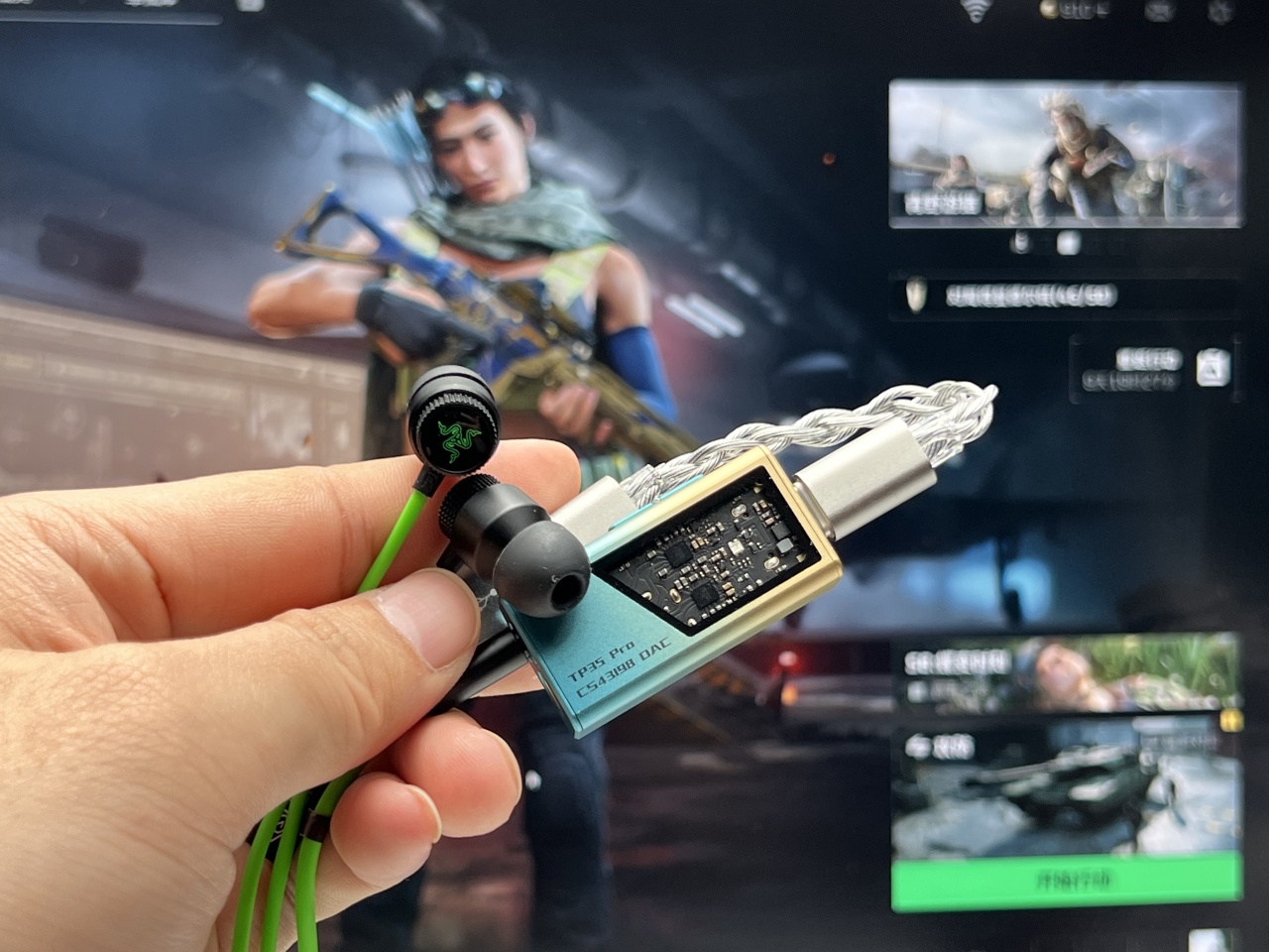最后就是听声辨位,由于TP35Pro底噪做到了纳伏级别,几乎等于0底噪,它能杜绝电脑绝大部分的电流滋滋声,给到你很纯的游戏声音,在大坝能清楚听到脚步声、打药声、换子弹声等信息,而且方位感也有,HIFI小尾巴作为游戏声卡它是没毛病的。