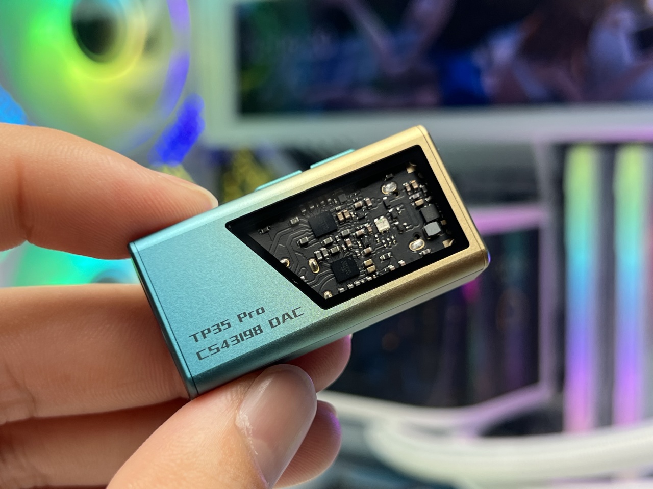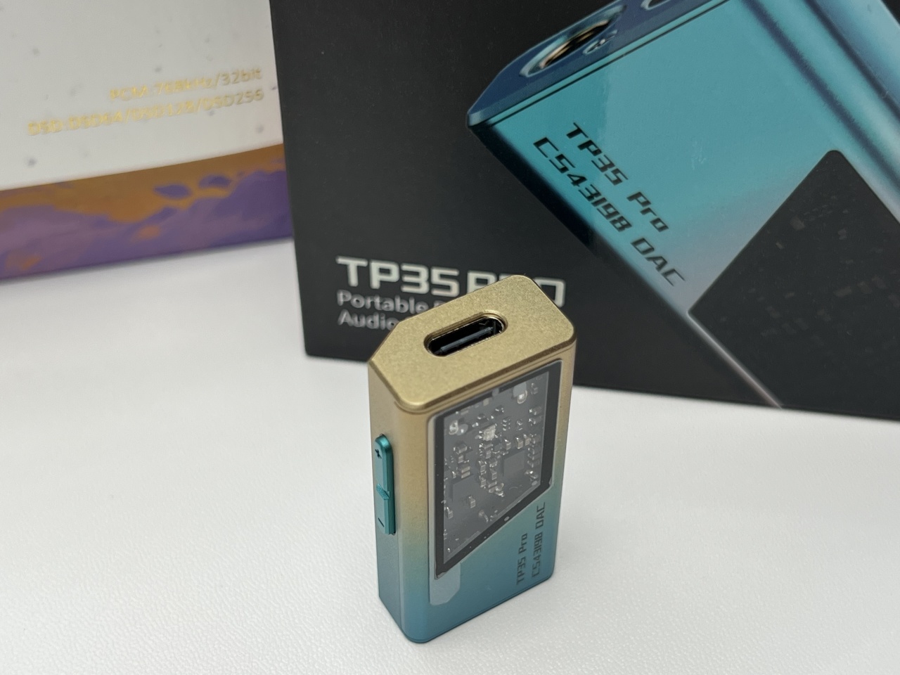 机身正面还印有TP35Pro型号以及双CS43198 DAC信息。