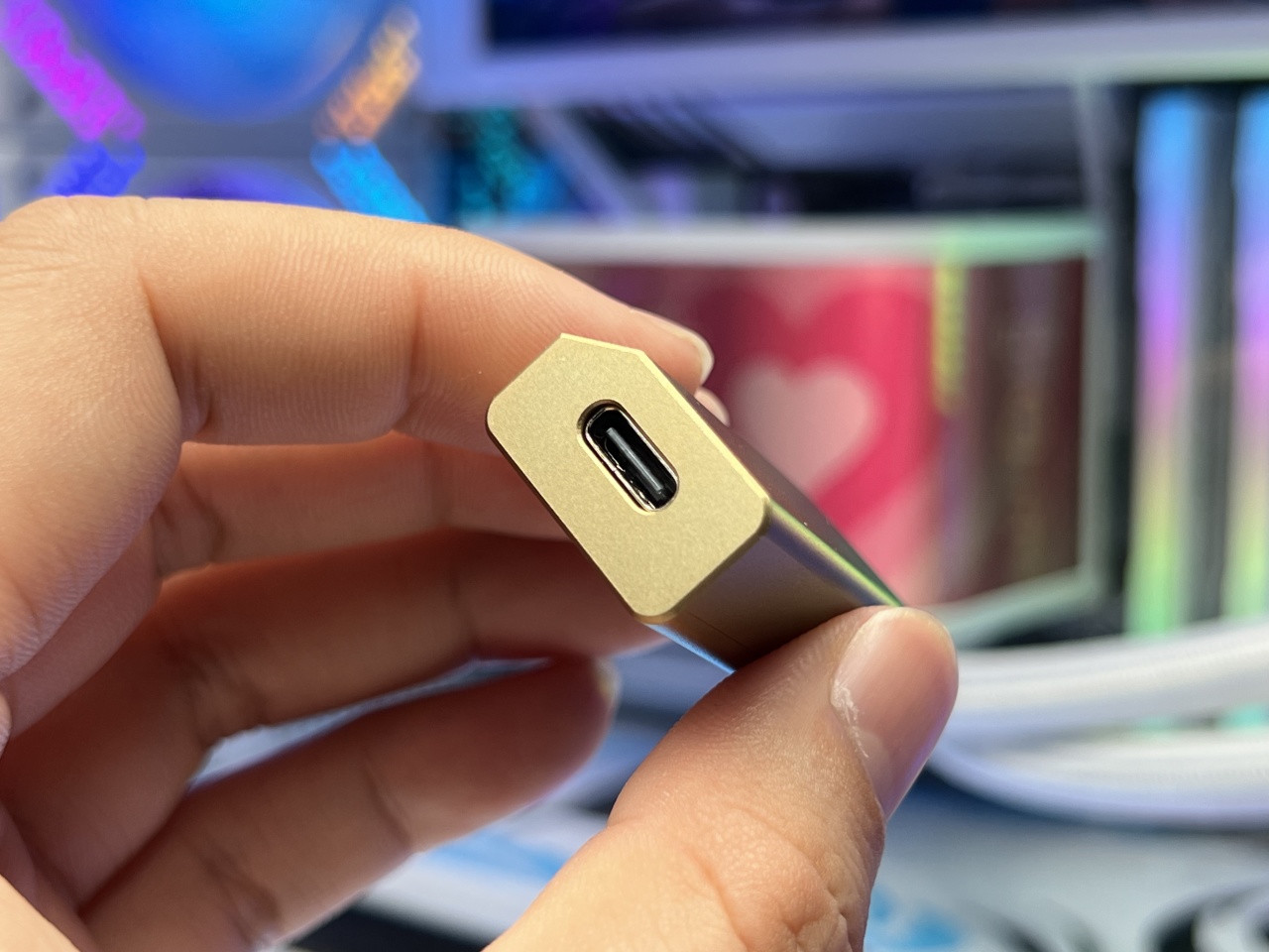 顶部是C口输入端,包装内给到了C to C的数据线,以及USB A转C转接头,二者搭配能让TP35Pro最大程度兼容目前市面上的主流设备。