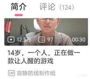 這段時間,B站上有個小孩又火了,他叫@寂靜防線製作組,他的視頻叫“14歲,一個人,正在做一款讓人醒的遊戲”。