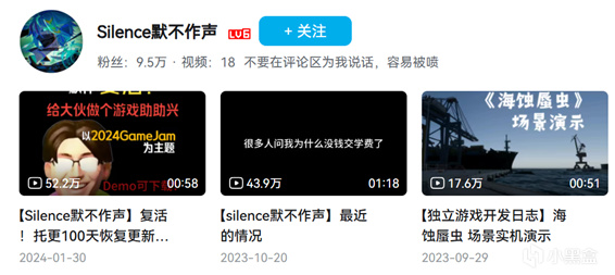 我看着B友們的留言,忽然回想起了3年前,另一個靠“想做遊戲”火到出圈,甚至狂漲了十幾萬粉絲的UP主——Silence默不作聲,人稱默神。