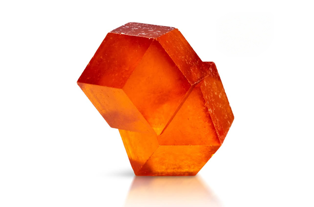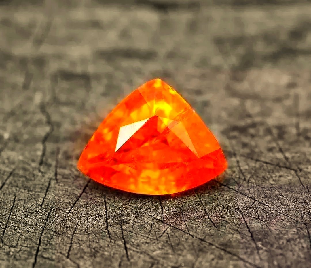 錳鋁榴石刻面,商業名稱“芬達石”(因爲顏色酷似芬達汽水)