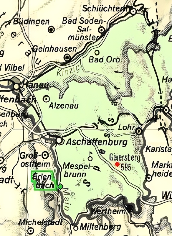 圖中淺綠色區域爲Spessart山脈