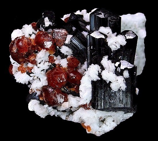 與黑色電氣石,白色鈉長石花花共生