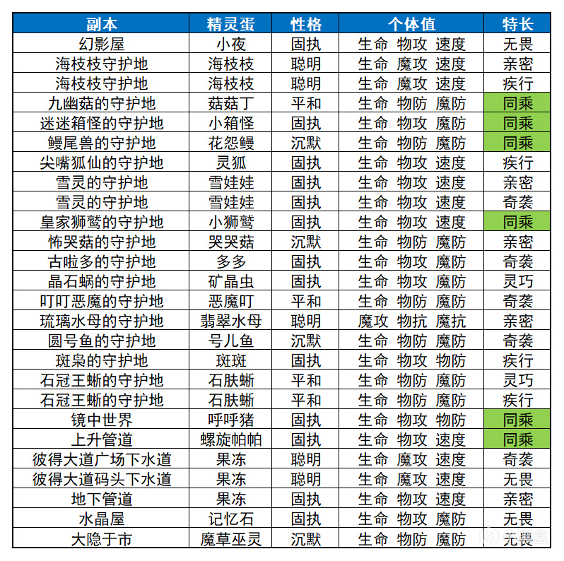 全副本精灵蛋属性