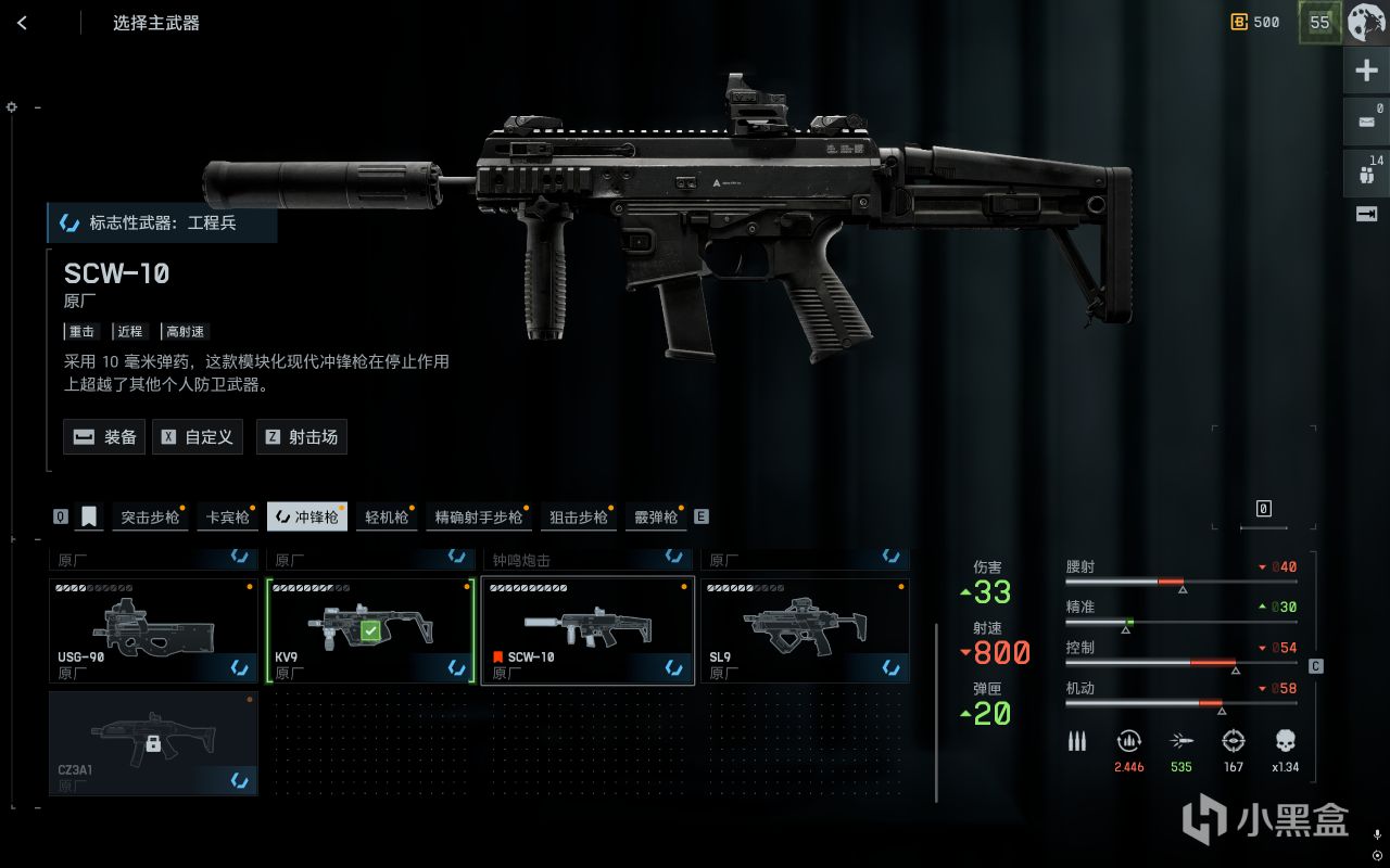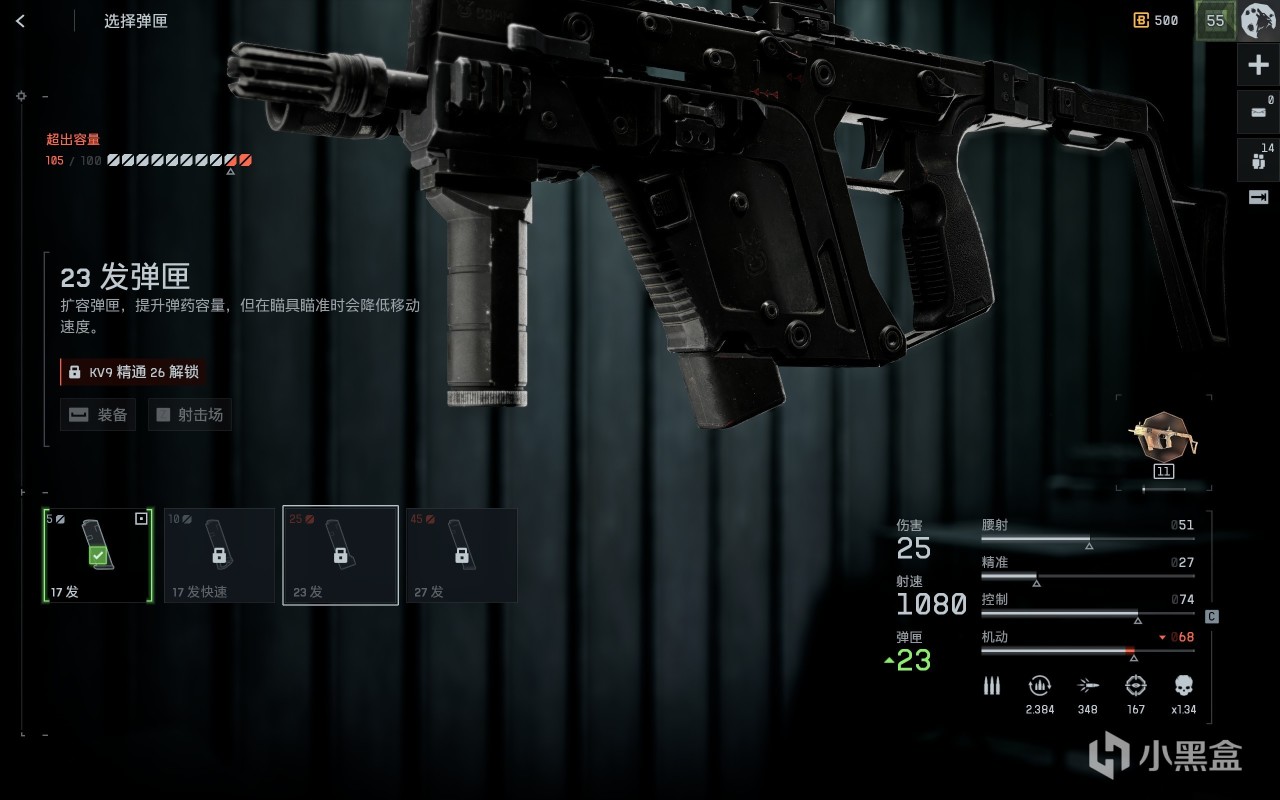 再次,也就是对大弹夹配件的刚需,这一点对于kv9和scw是一致的。没有23发弹夹的kv9,子弹容量捉襟见肘,基本不存在连续接敌的可能。而这一配件,要在高等级才能解锁。