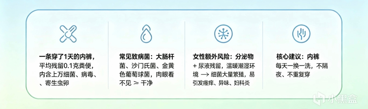 根据微生物学家的研究,一条穿了一天的内裤上,平均会残留约0.1克粪便。别嫌恶心,这是事实。这0.1克粪便里,藏着上万个细菌、病毒、寄生虫卵,包括大肠杆菌、沙门氏菌、金黄色葡萄球菌等。这些微生物不会因为你“看着不脏”就消失。