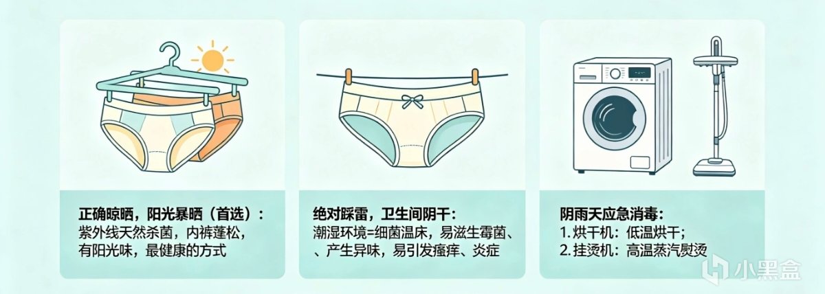 洗完的内裤,一定要在太阳下晒干。阳光中的紫外线是最天然、最有效的杀菌剂。晒干后内裤蓬松、有阳光的味道。