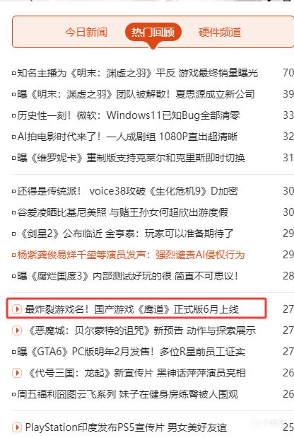 最近,一篇国产游戏《鹰道》6月24日正式版发布公告,在网上被传得纷纷扬扬,着实炒作了一番。因最炸裂游戏名被广大玩家百分百误解,并因人气迅速攀升被推上小黑盒热点榜位和互联网全网热搜!以下是网友发我的知名老牌3DM游戏网的热门文章回顾。