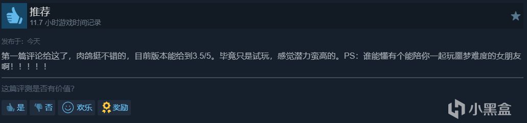 最近遊戲DEMO版還得到了非常多玩家們的認可,近30天還獲得了100%好評。還有挑戰無盡模式的100層的活動在評論區