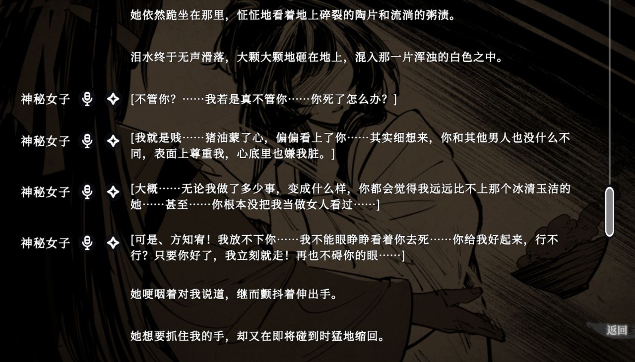 而與回憶相關的重要角色,男主的幻覺“小雁兒”,本該起到着重強調的作用,但是遊戲中依舊沒有着重把握。