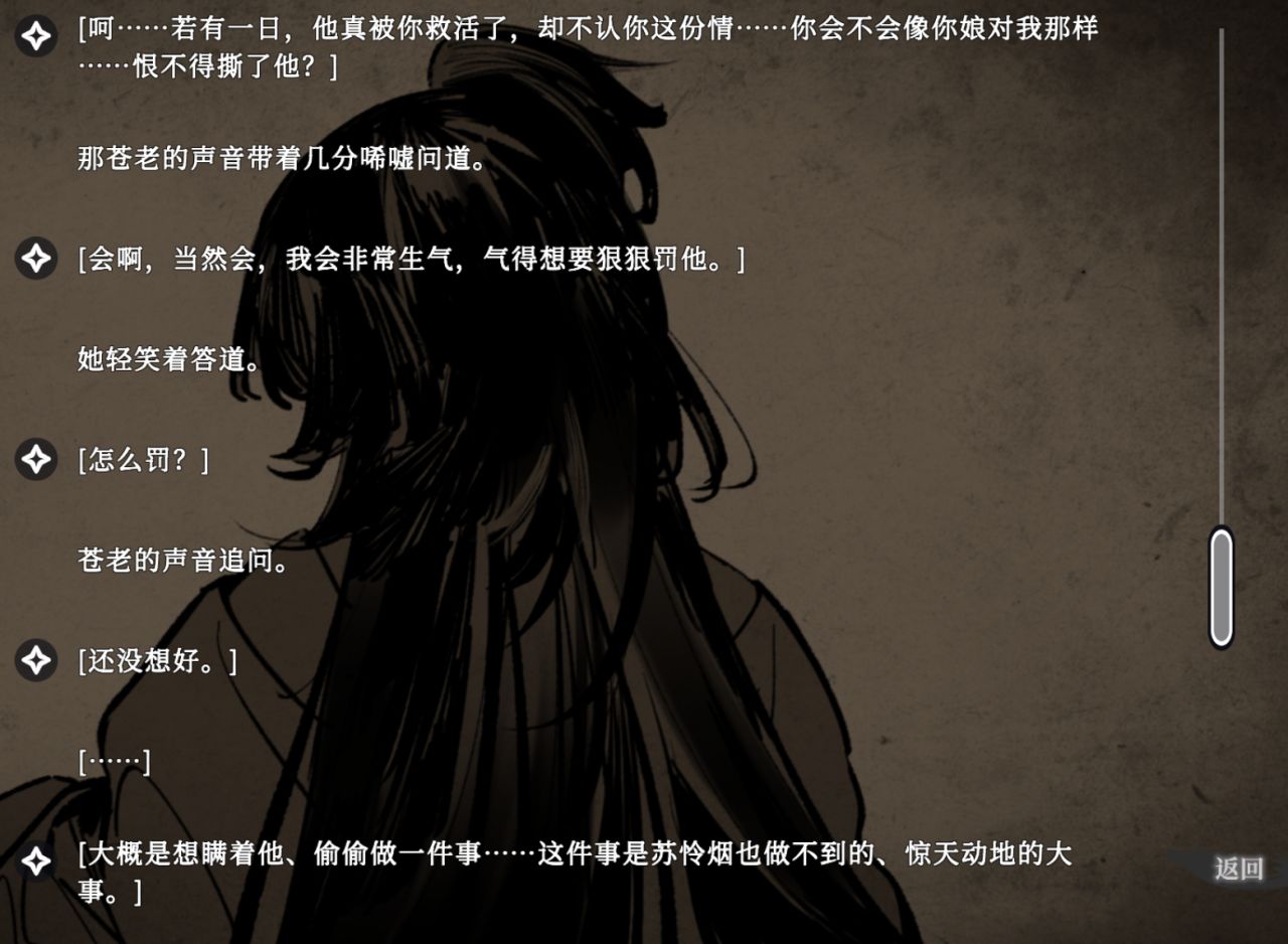 而對於遊戲的劇情,開局女一就死了,後面的劇情就是用來讓男主回憶。而結局最多也就是男主身邊剩下的是作爲自己的“幻覺”存在的蘇憐煙。