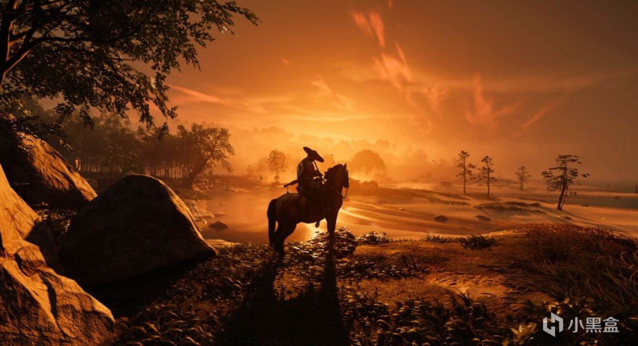 当境井仁独自骑马穿行于那漫山遍野都是红叶的树林之中时,微风轻轻吹拂着芦苇荡,此时耳边唯有马蹄声、从远处传来的尺八声。在这苍茫天地之间孑然一身所产生的那种孤寂之感,并非会让人感到害怕,相反却有一种能够洗涤心灵的宁静氛围。