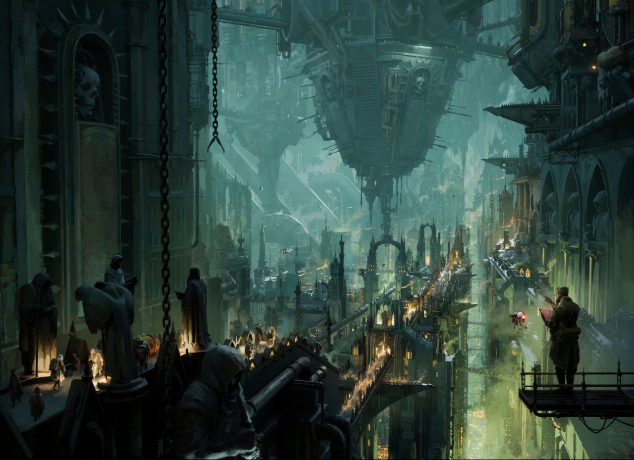 中层巢都由密密麻麻的居住区(Hab-blocks)、巨型工厂(Manufactorum)、管道网络和运输通道构成,形成了一个立体交错的钢铁迷宫。