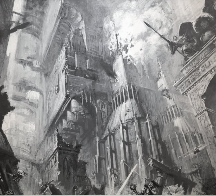 宏伟的帝皇大教堂矗立在尖塔中央,金色的穹顶在人造光源下闪耀,国教的牧师们在这里举行盛大的仪式,向数十亿底层民众传递帝皇的“荣光”,却对他们的苦难视而不见。
