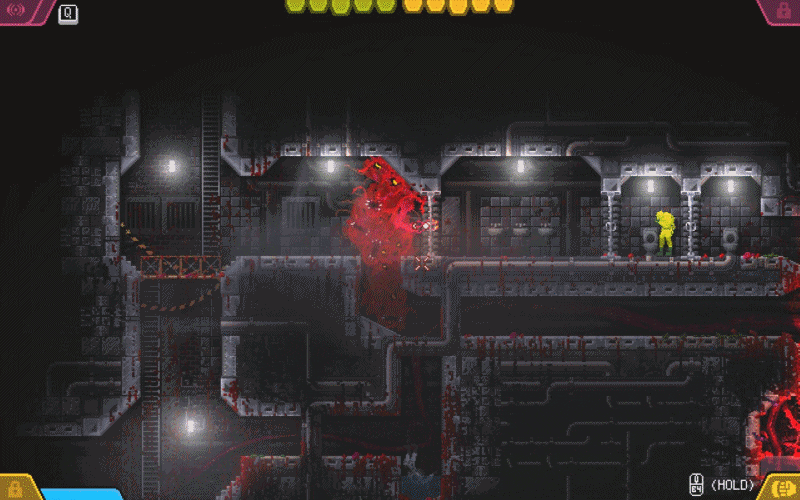 遊戲裏還有一些解謎元素,需要通過各種彎彎繞繞的通道,再利用觸手伸長等能力找到大門的開關,有些燒腦。