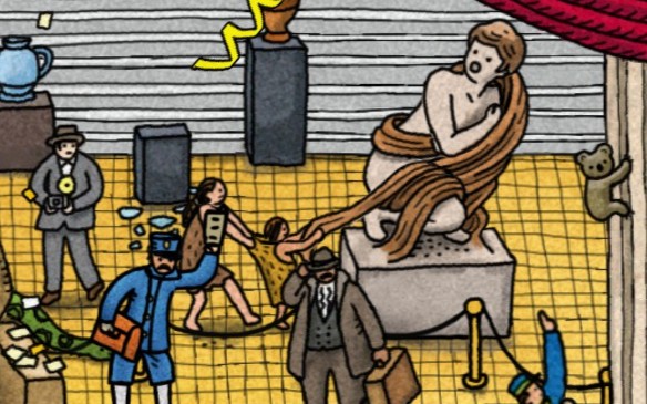 還有個熊孩子,一直薅雕像袍子,雕像嚇得直往回拽,孩兒他媽也幫着拉架。
