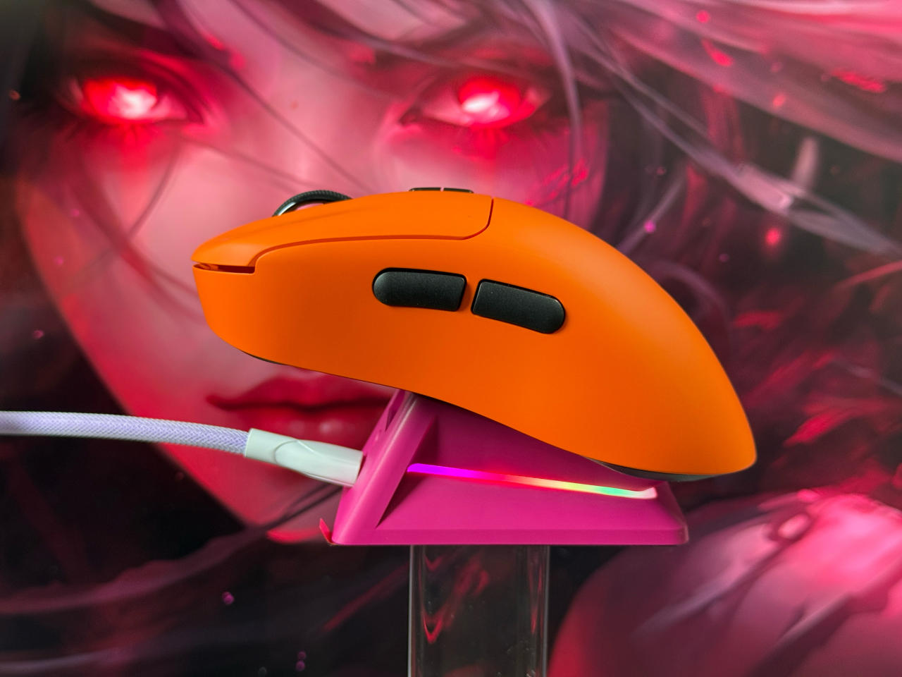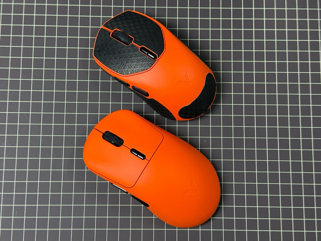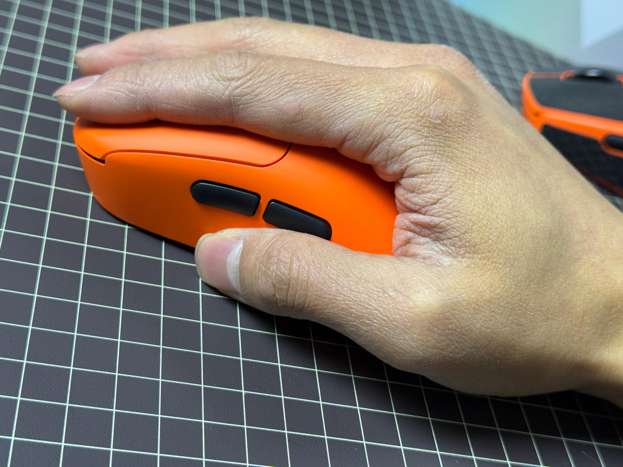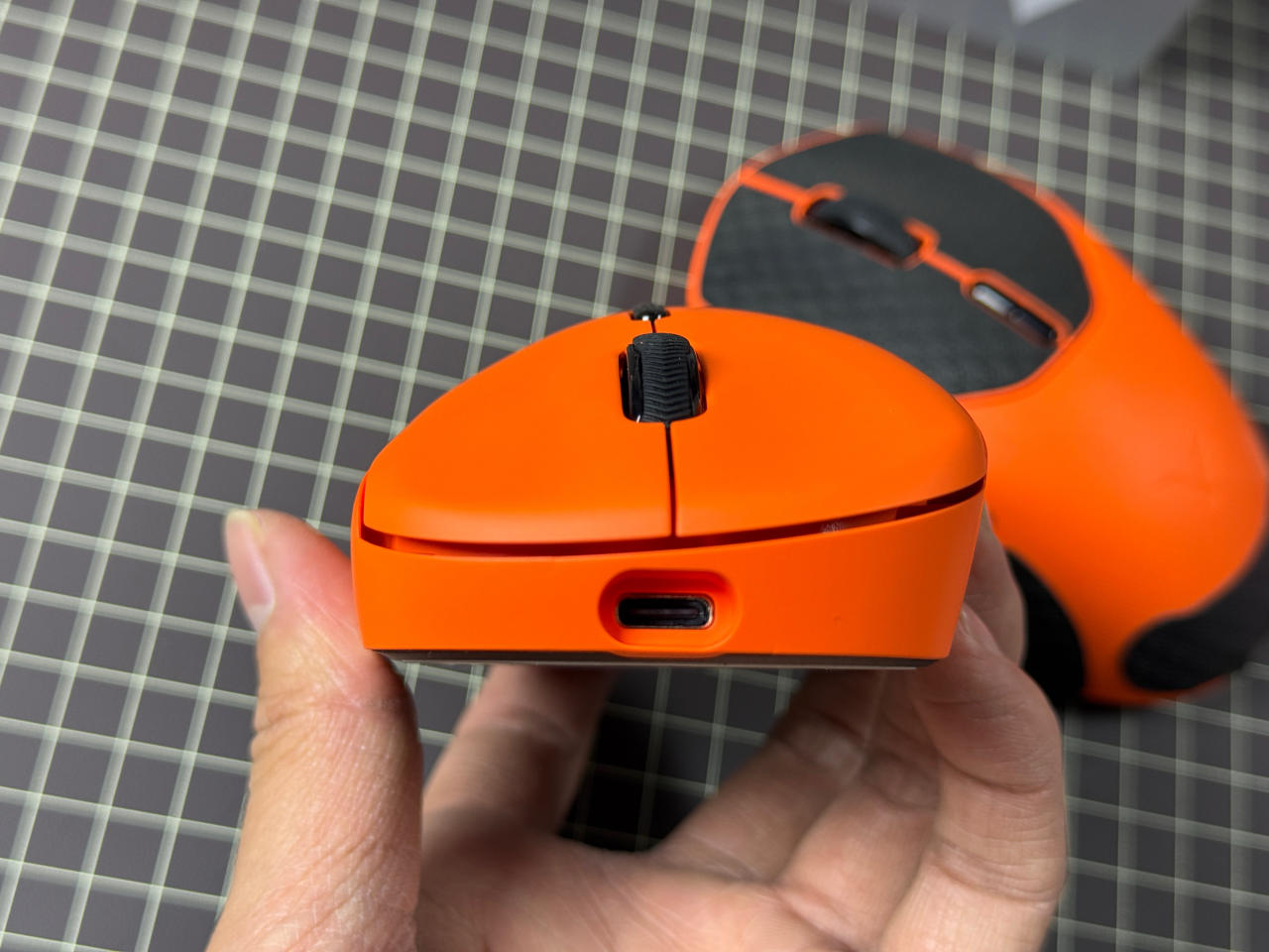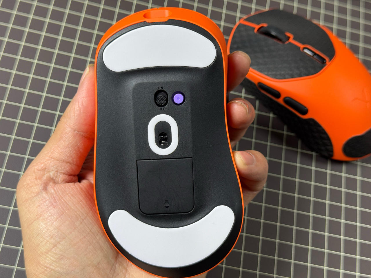 这配色跟我之前入手的雷柏VT1二代一样,两者外壳上都有亲肤防滑涂层,这点必须给值得好评,摸起来挺舒服,对手汗党很友好