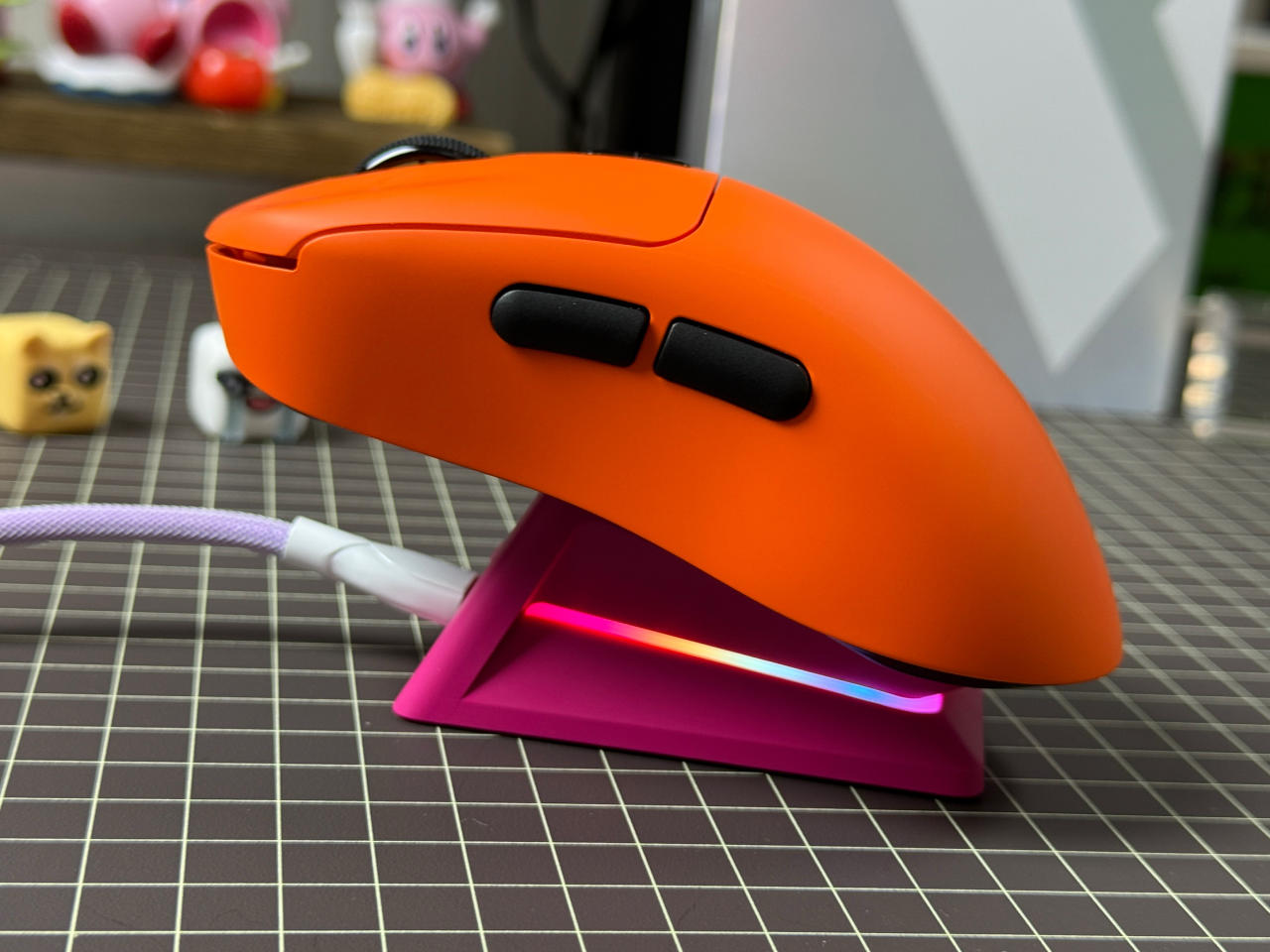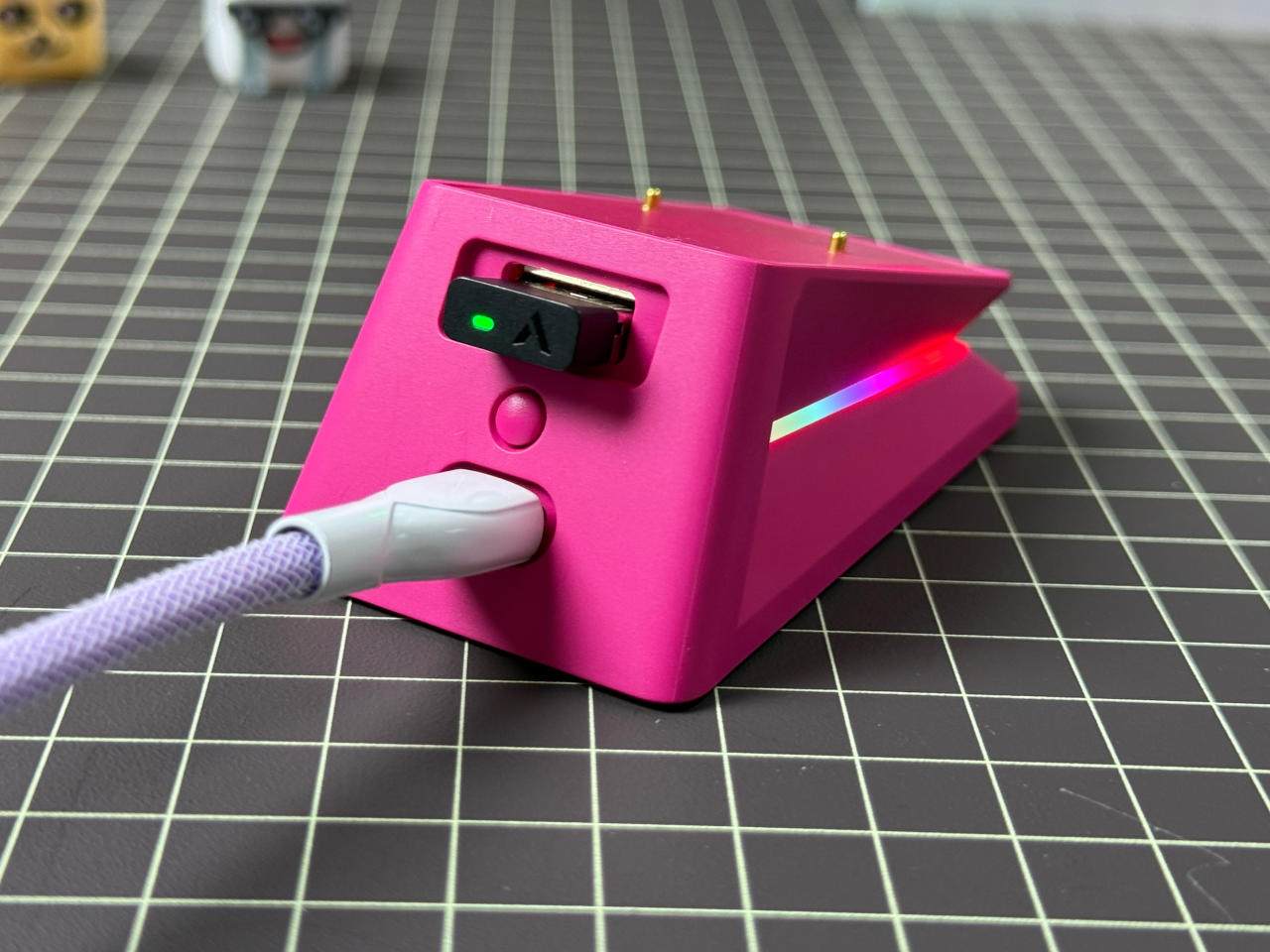 功能其一,方便收纳小巧的8K Nano接收器,防止丢失,并带有电量指示灯,可实时知晓鼠标剩余电量