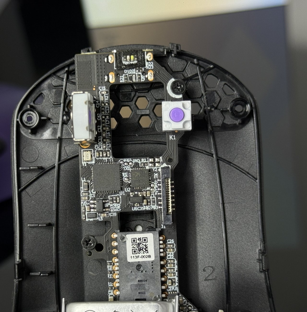 “极客之芯2.0”,雷柏自研高度集成PCBA,这块板子的体积非常小,小到你可以自行DIY保留内核,更换外壳,甚至是塞进一些古老且落后的模具里面,当然体积小,重量自然也会缩减很多
