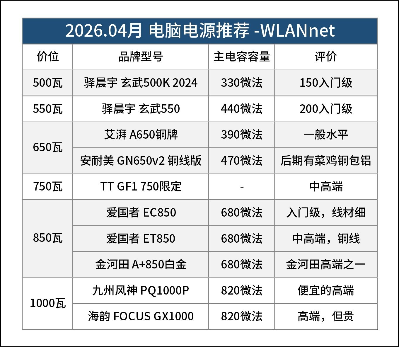 电源选各品牌的中端、中高端、高端,才不会差。低端电源,为了省钱,都开始用铜包铝电源线,铜包铝比纯铜的温度高。