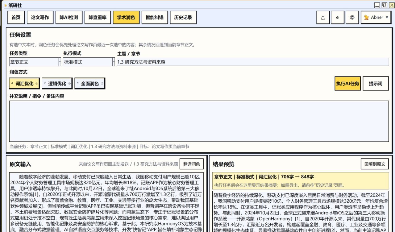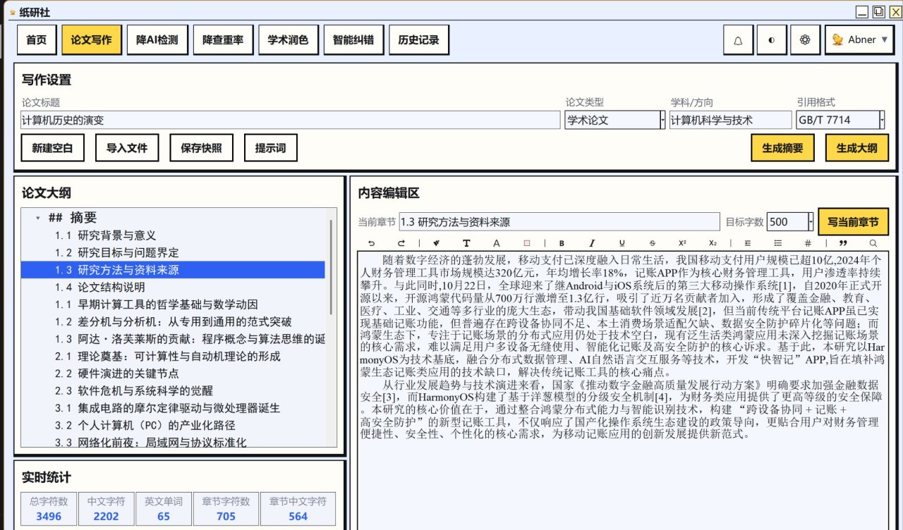 各位盒友在写论文的时候最麻烦应该是反复切换任务。刚写完大纲,要补正文;正文写完,要润色;润色之后,要查 AI 痕迹;改完 AI 痕迹,还要继续处理重复内容、格式问题、引用问题。工具一多,流程就碎,时间也被消耗在切换和整理上,而软件要解决的,正是这一类高频、重复、分散的学术处理工作。