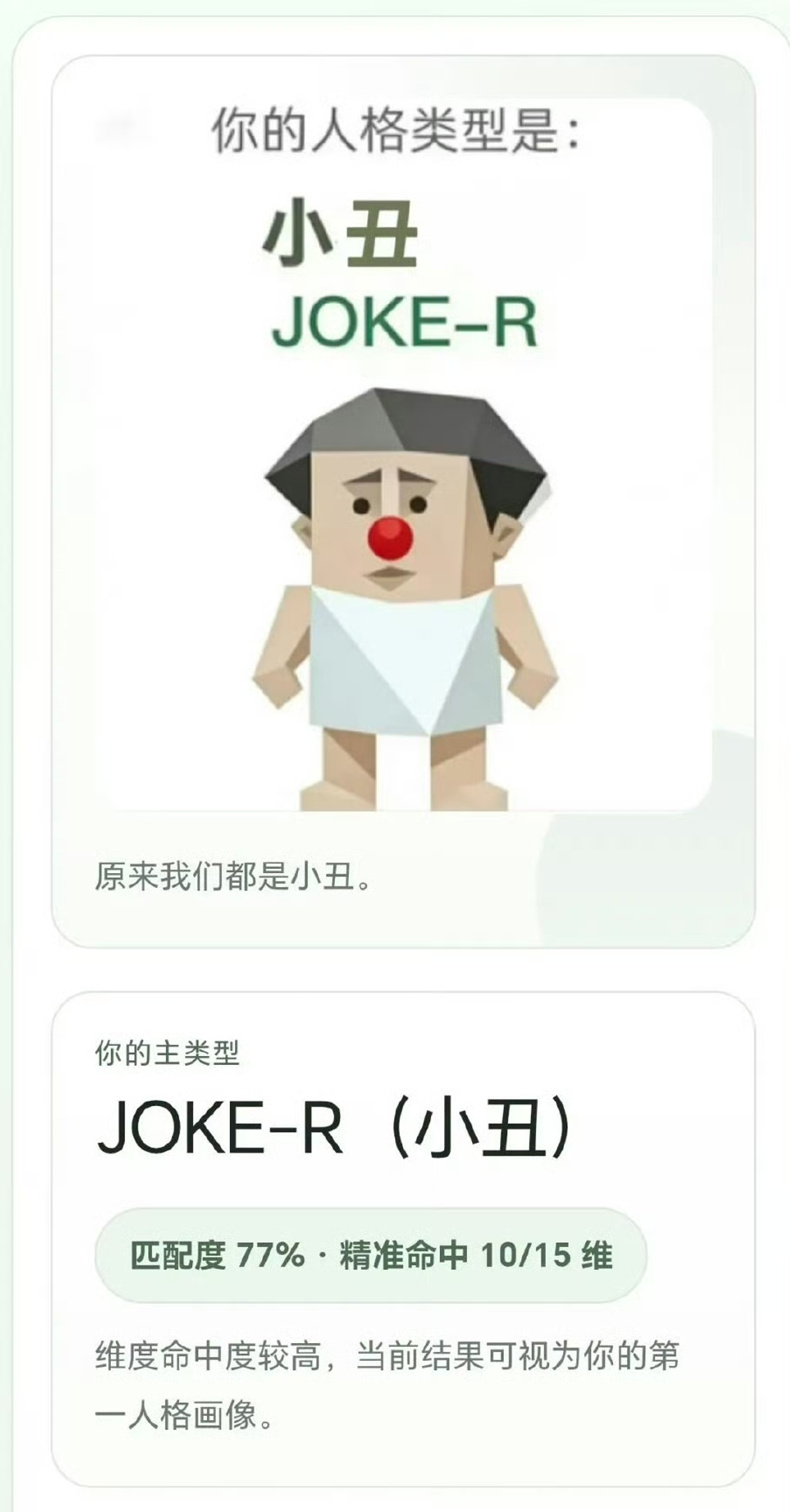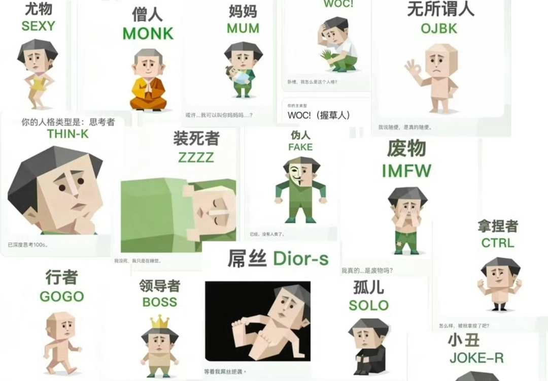 另外,又由於這幾年來,年輕人熱衷於以各種方式自嘲,比如給自己貼上“哥布林”“小丑”“老鼠人”之類的標籤,所以用SBTI上的各種負面人格來自嘲,也讓其擁有了豐富的社交性。
