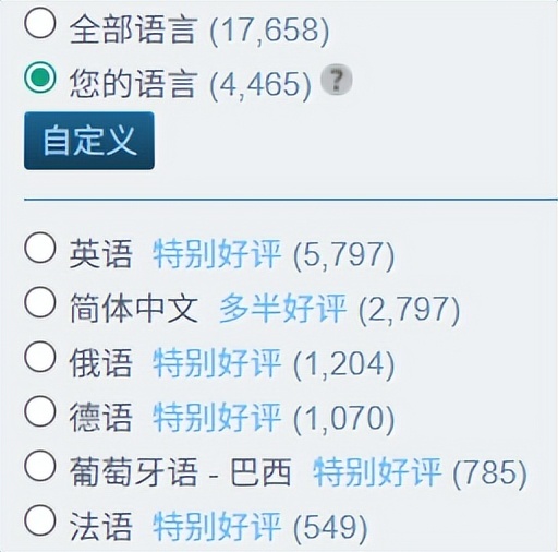 更反常的是,這遊戲在國內安靜得像個小透明,但在國外它早就被老外們玩瘋了。《靈魂面甲》目前在Steam上1萬7千多條評價,簡體中文只佔四分之一。剩下的全是英語、俄語、德語、葡萄牙語、日語、韓語……語種多得像聯合國開會。