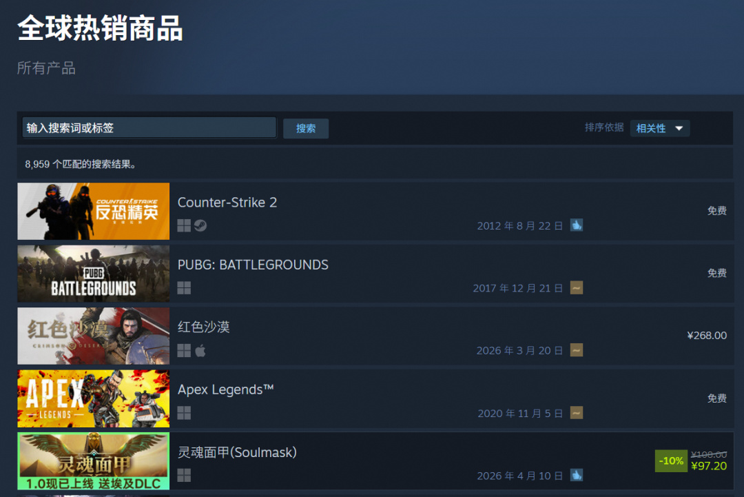 昨天DLC上線首日,《靈魂面甲》也取得了Steam全球熱銷榜第5,買斷制第2的好成績。