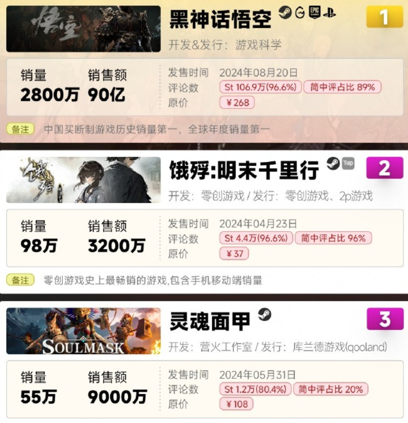 這款2024年5月上線EA的國產SOC遊戲,在國內的存在感,確實不算高。但實際上,《靈魂面甲》是2024年Steam國產買斷制遊戲銷售額排名第二的遊戲,僅次於《黑神話:悟空》。
