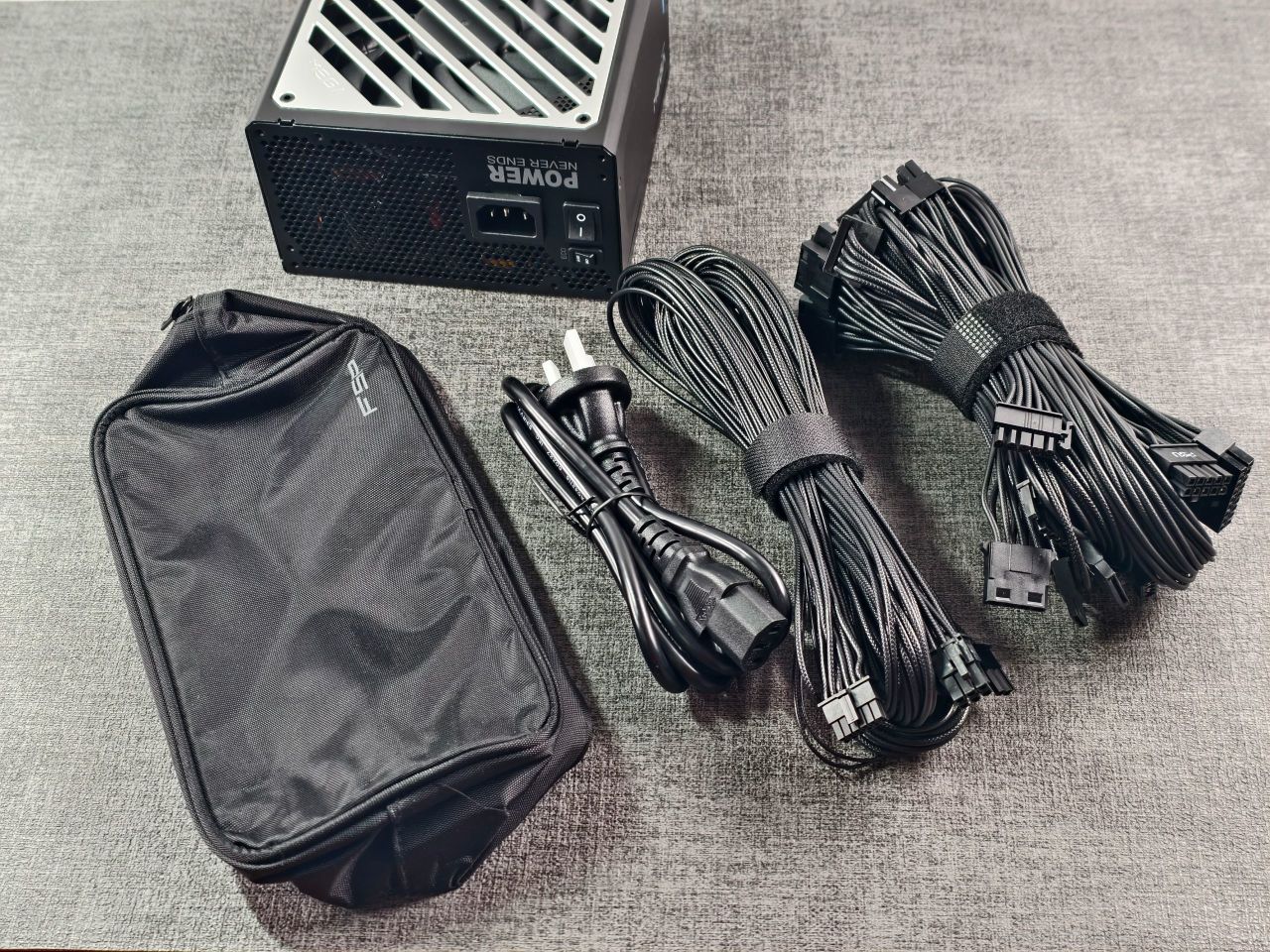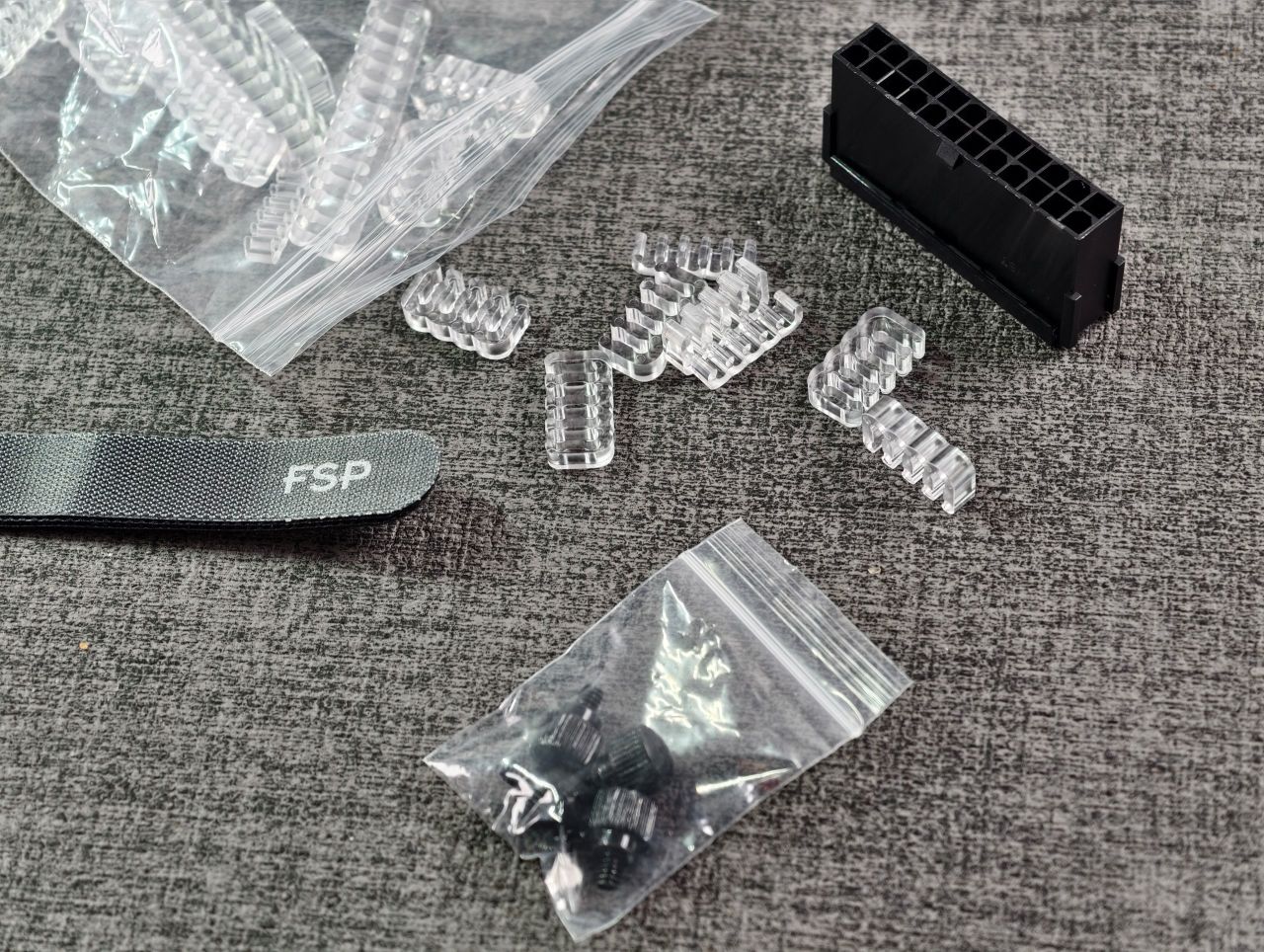 配件包含模组线(含电源线)、收纳袋和螺丝等附属配件,值得一提的是,附属配件里还附带了短接头、理线带、固定螺丝以及理线梳,配置得很齐全。