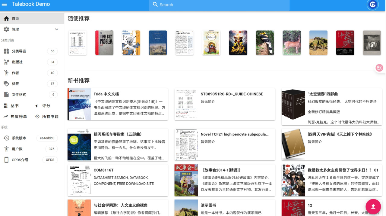 虽然Calibre很强,但确实也有不少人觉得原版对中文的支持不够友好,用起来会有些费劲,所以Talebook这个基于Calibre+Vue.js的开源项目出现了。
