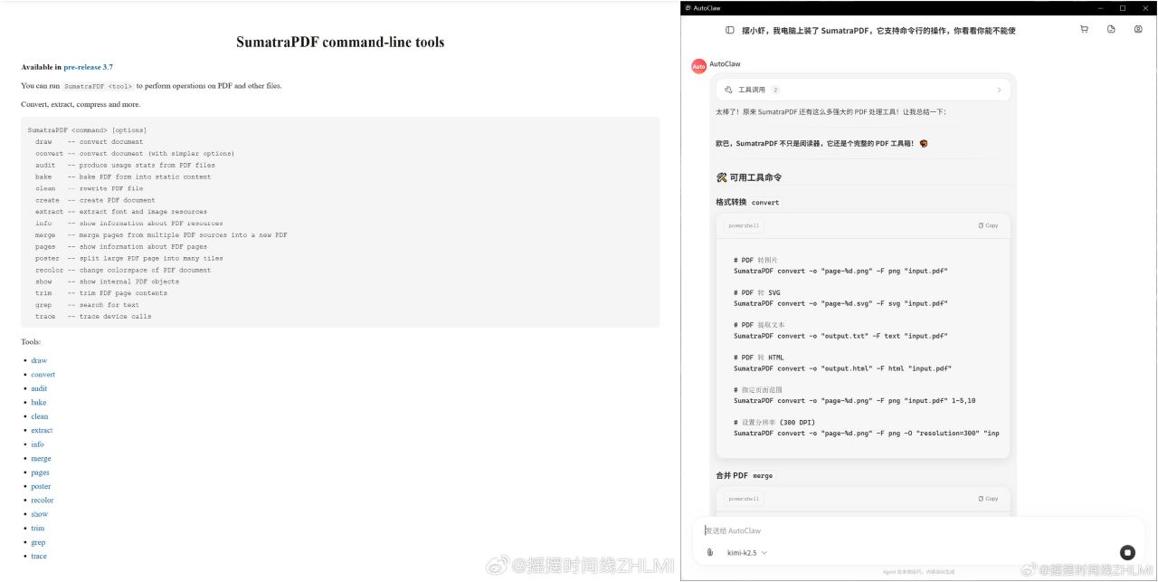 “SumatraPDF 是我用了很久很久的 PDF 工具,今天看到它最新的 3.7 预览版拥有了命令行工具,可以运行该程序 SumatraPDF <tool> 对 PDF 和其他文件执行操作,比如转换、提取、压缩等等。这意味着,如果你在 Windows 上运行各种 AI Agent,你将拥有一个强大的可以被 AI 支持的 PDF 工具。 ”