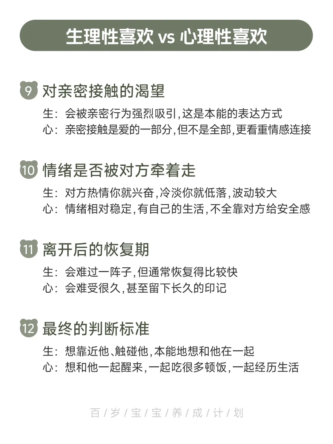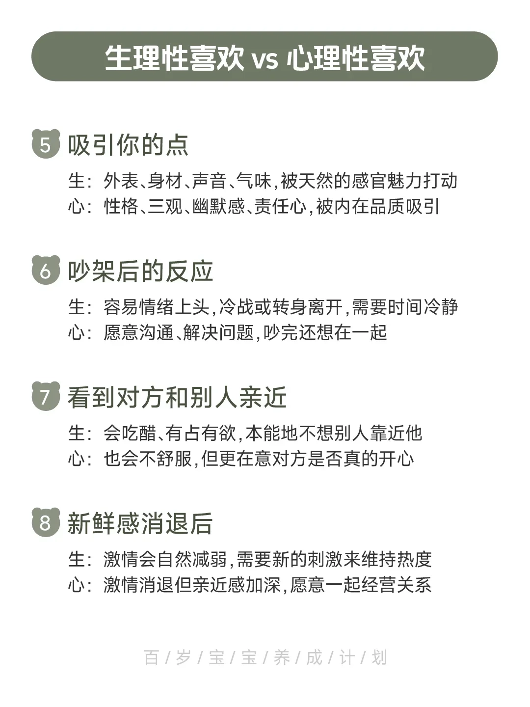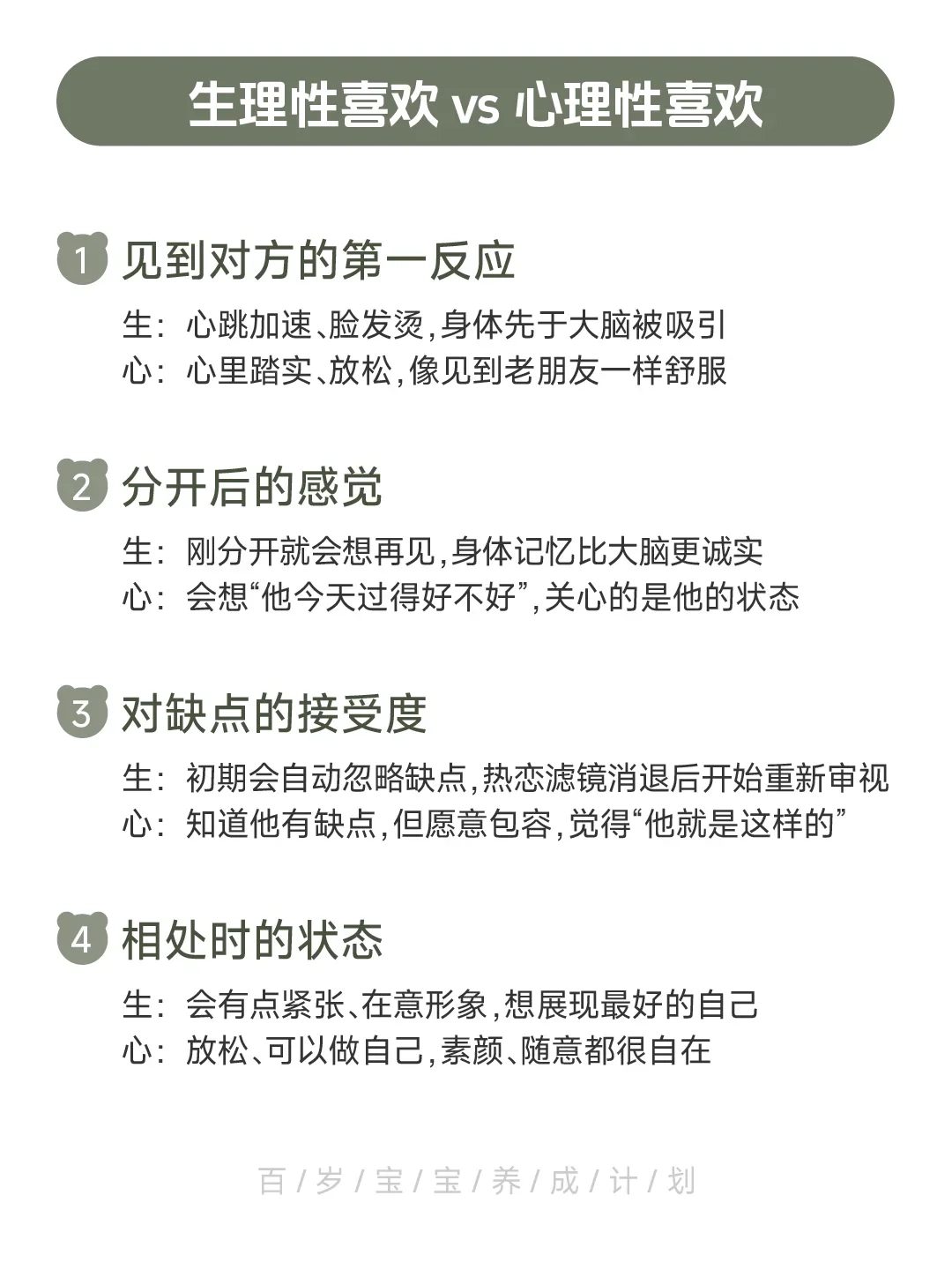 生理性喜欢是本能的心动,心理性喜欢是理性的心定。两者没有高下之分,最好的感情是身体吸引+情感依赖同时存在。
