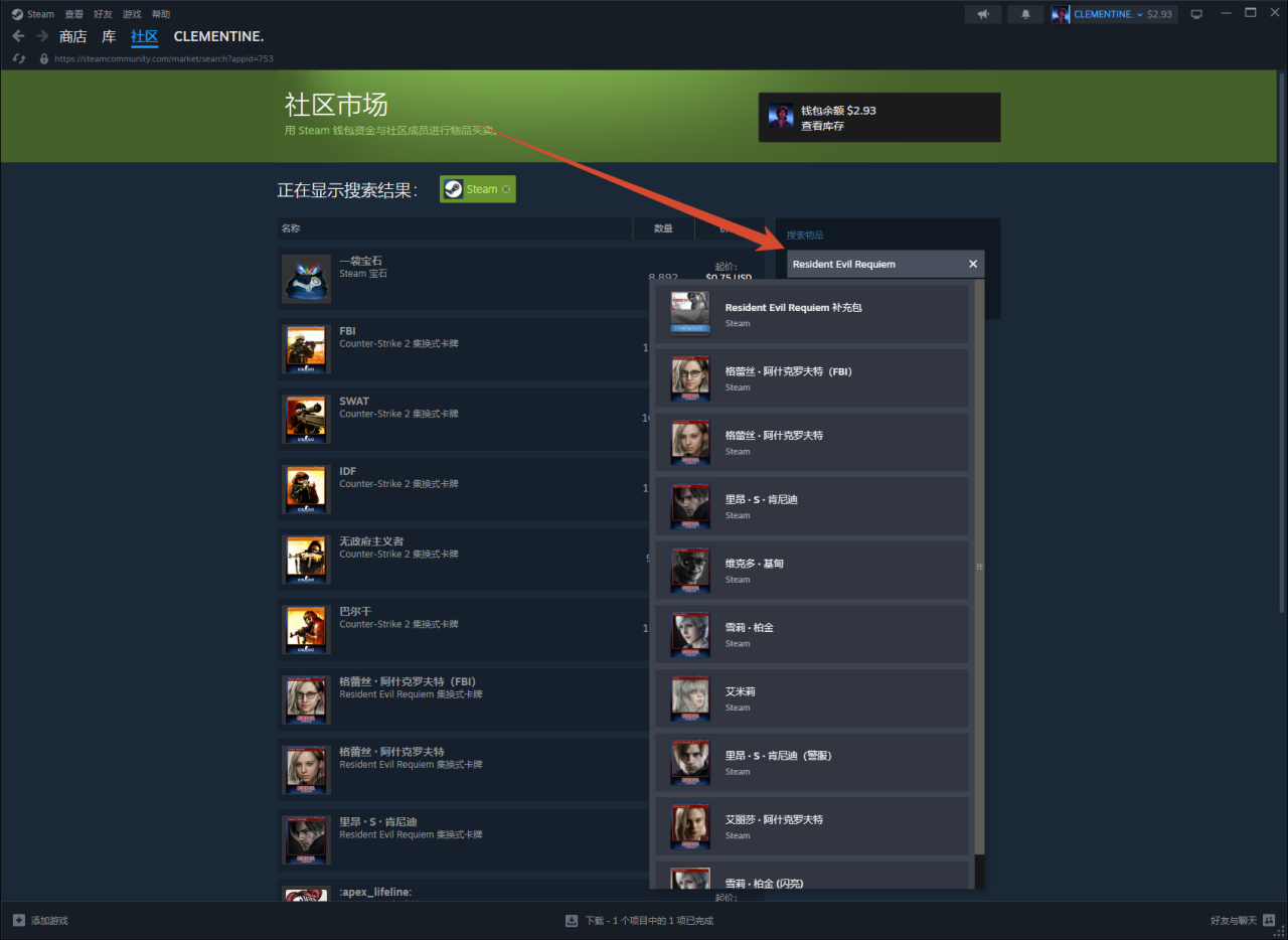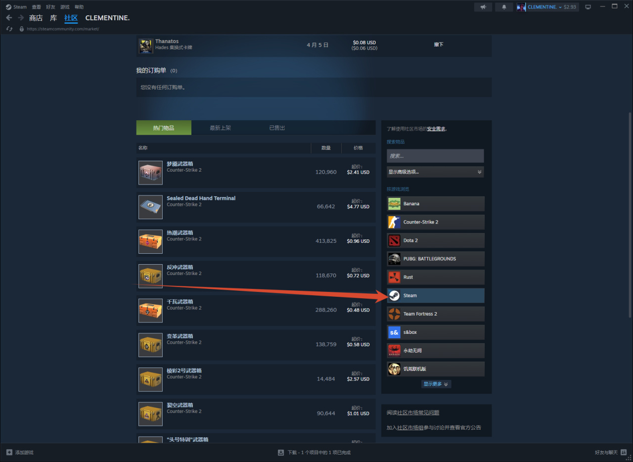 第六步:進入市場後點擊Steam,粘貼剛纔複製的遊戲名字然後回車搜索。