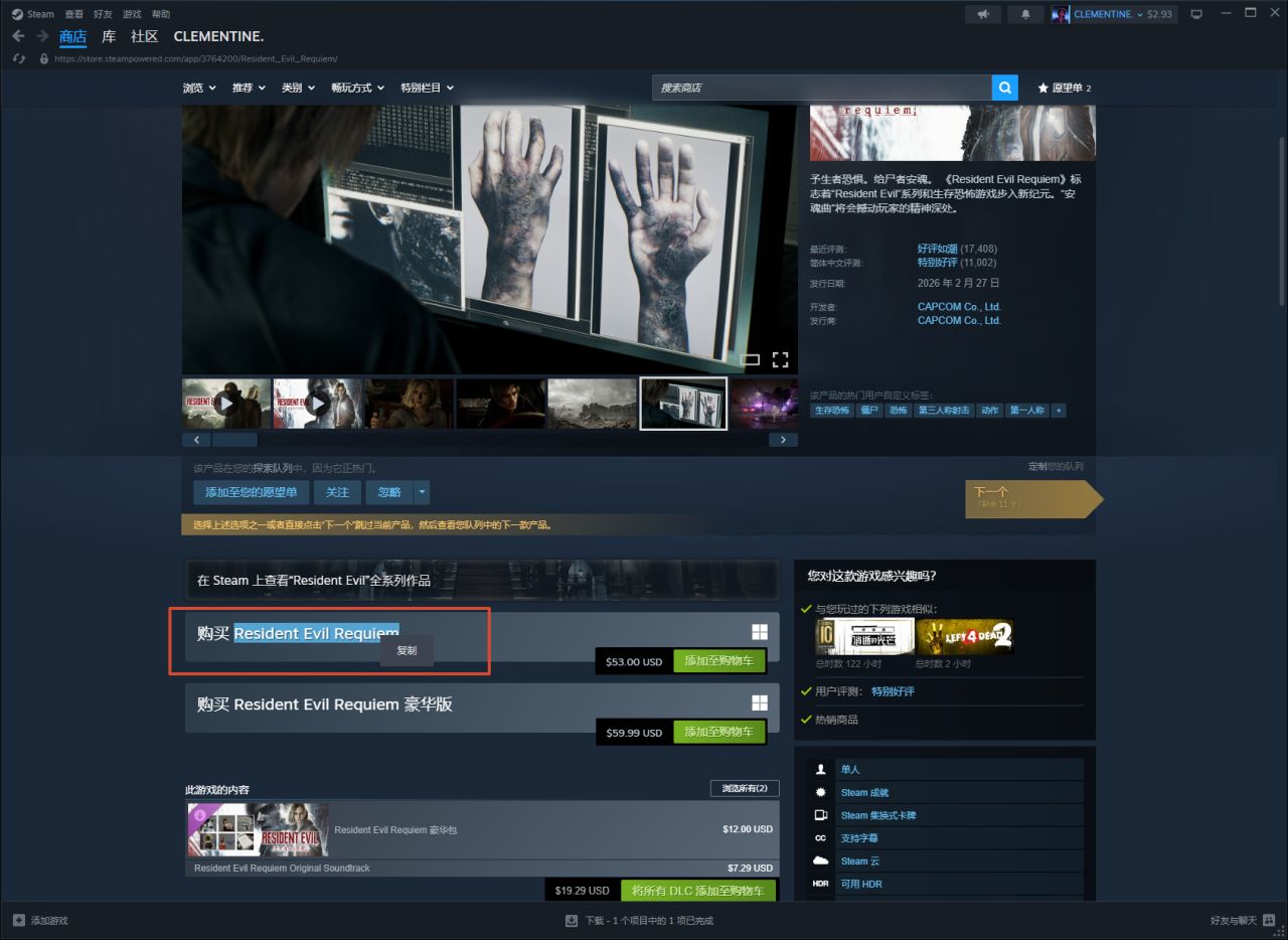 圖片中我選擇以當前比較熱門的《生化危機九:安魂曲》的背景繼續。