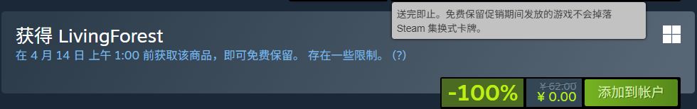 原价62元的LivingForest,于北京时间04.14,1:00截止免费领取!