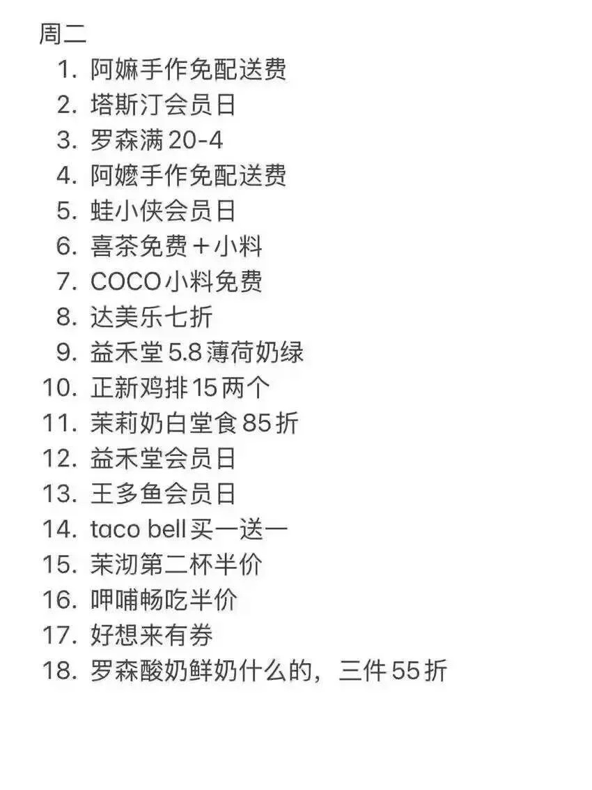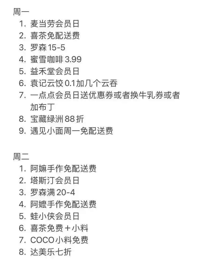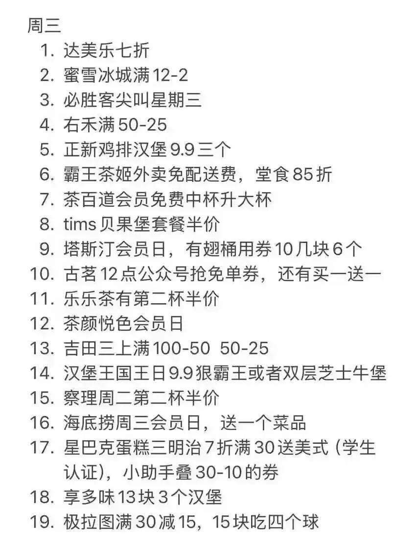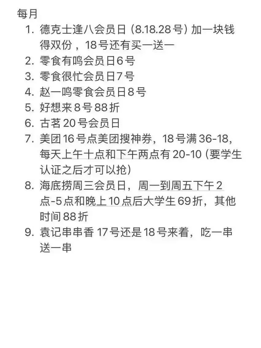 9.海底捞周三会员日,周一到周五下午2点-5点和晚上10点后