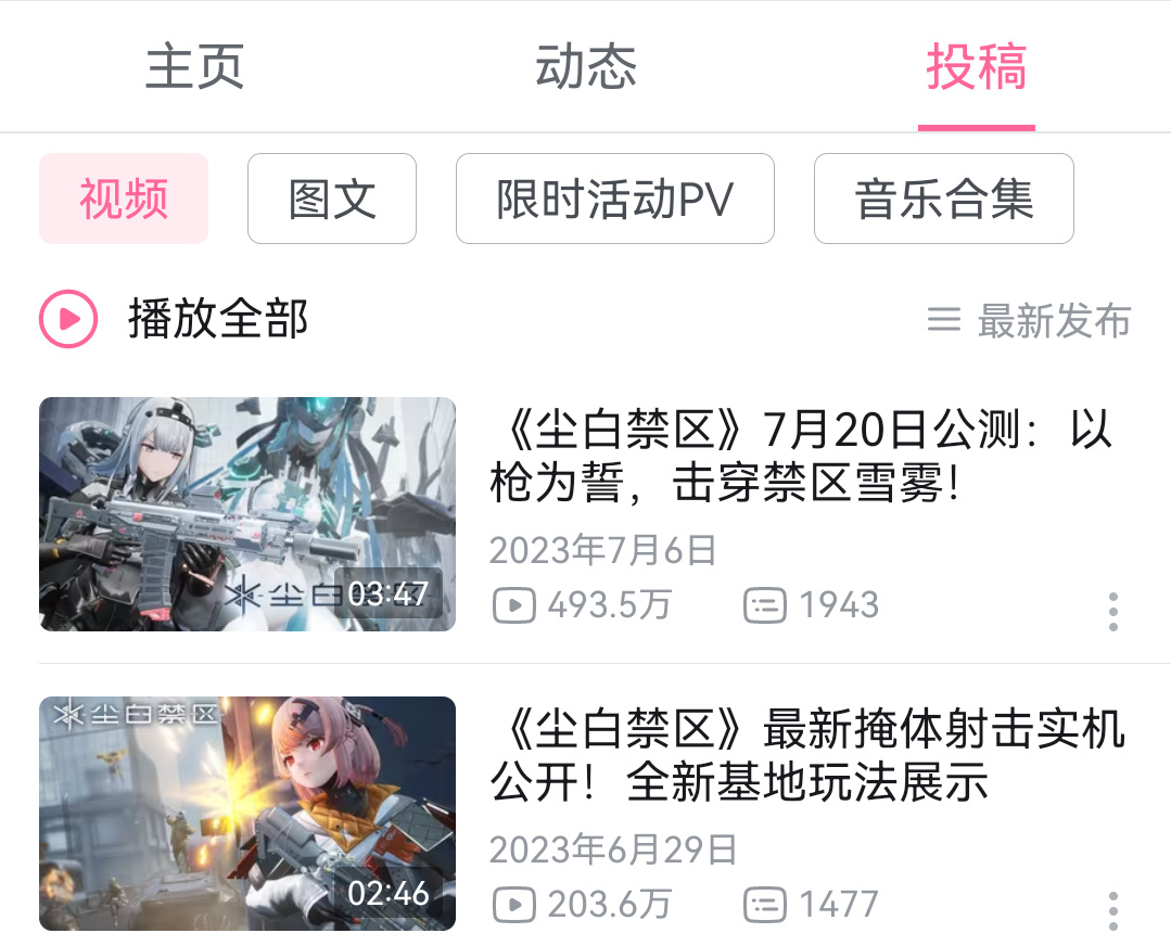 目前《塵白禁區》b站官號只留下了25個視頻,都是開服前的視頻,其他視頻均不見蹤影,包括實機PV、ASMR等內容。