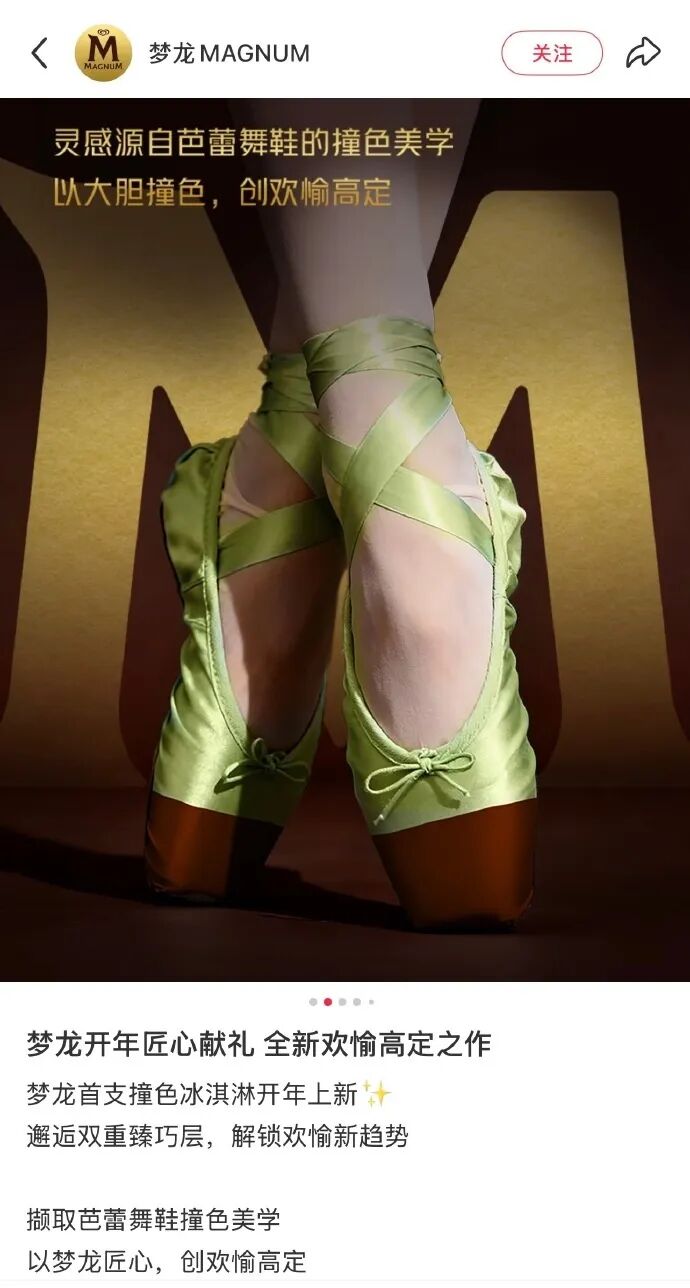 夢龍冰淇淋廣告再次引發爭議。近日,不少網友注意到夢龍冰淇淋在某社交平臺發佈的一則開心果新品廣告,其宣傳物料中以“靈感源自芭蕾舞鞋的撞色美學”爲主題,將芭蕾舞鞋的配色設計與冰淇淋外觀關聯。部分消費者認爲這種聯想令人不適,質疑內容涉嫌物化女性。話題“夢龍廣告 芭蕾舞鞋”也在4月13日迅速登上熱搜。此前夢龍在社交平臺發佈的廣告