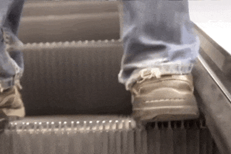 而且毛刷是連續的一整排,比只貼個“小心夾腳”的標識更有效。因爲很多人坐扶梯的時候根本不會低頭看字,尤其趕時間的時候,站姿很隨意,鞋尖一歪就貼邊了。毛刷相當於一直在邊上輕輕“趕人”,讓你別站得太極限。