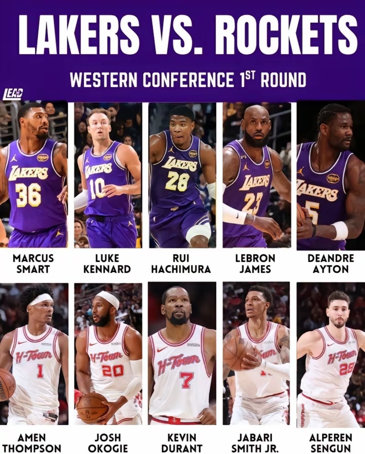 火湖大戰來了!季後賽首輪湖人主場對陣火箭,詹姆斯杜蘭特再次季後賽對決!本場將是兩人的第四次季後賽對決,前三次都是總決賽對決,分別是12年,杜蘭特輸了,17和18年杜蘭特贏了,這一次在季後賽的首輪對決,也可能是老詹和杜蘭特最後一次頂級對決了。