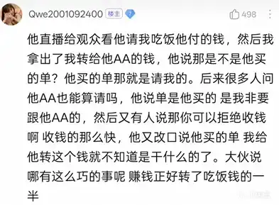 当网友在贴吧看见后,便去质问小明,但小明有不一样想法,认为那天是他请的客,他买的单。